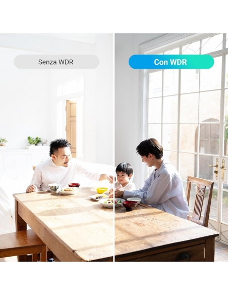 - 【Tecnologia WDR Reale】Bilanciamento perfetto tra luci e ombre in ogni inquadratura, grazie all'elaborazione avanzata che previene la perdita di dettagli nelle zone scure e l'abbagliamento da luce solare intensa. Ideale per ambienti con forti contrasti luminosi (es. ingressi con finestre).