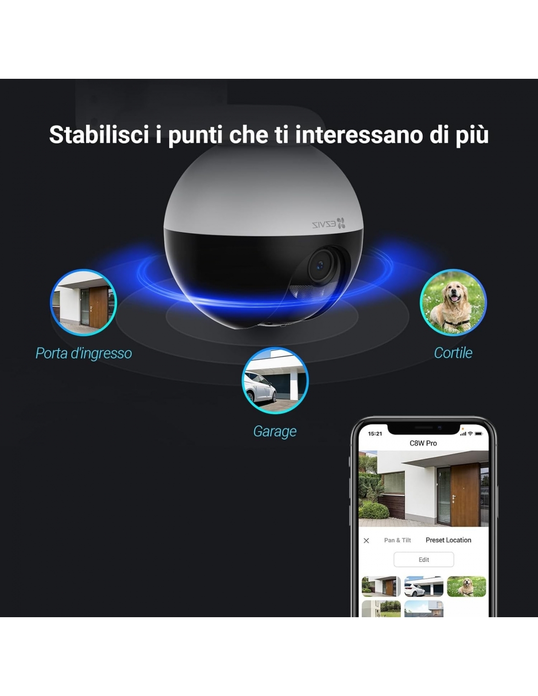 EZVIZ C8W 2K+ Telecamera WiFi da Esterno Motorizzata, Telecamera WiFi di Sorveglianza, Videocamera Esterna Pan&Tilt con Copertura Visiva a 360 °, Visione Notturna Fino a 30 m, AI, Impermeabile
