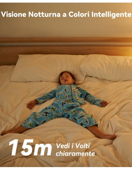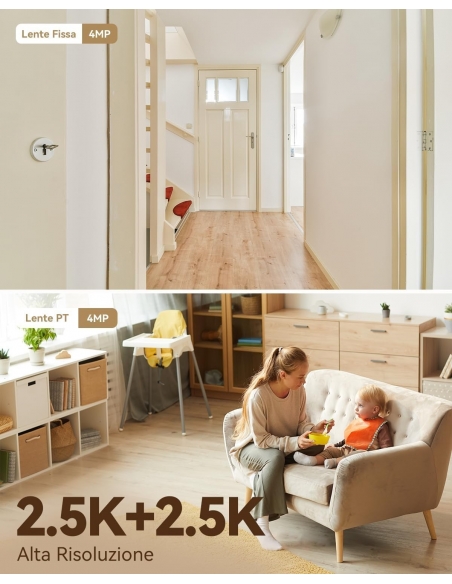 - 【Sorveglianza a 360°con Doppio Obiettivo】La telecamera wifi interno presenta un design a doppio obiettivo per una copertura completa, senza punti ciechi e viste con 8x zoom digitale con facilità, è dotata di un teleobiettivo per catturare i dettagli in primo piano e di un obiettivo PT per ruotare a 360 º.