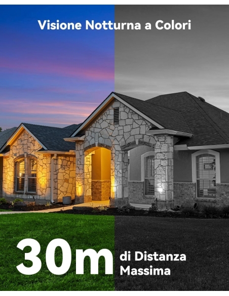 - 【Visione Notturna a Colori da 3MP+5MP & Audio Bidirezionale】La telecamera esterna ha 4 modalità di Visione Notturna, in cui soddisfa il tuo neccesario. Inoltre, è possibile conversare in tempo reale con le persone monitorate attraverso la telecamera.