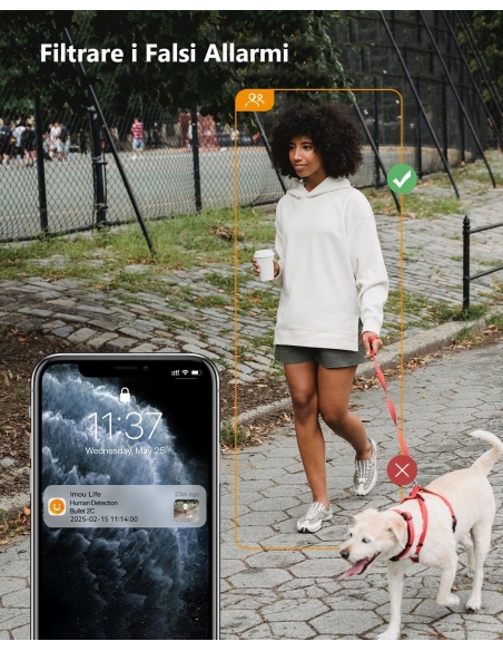 - 【INTELLIGENZA ARTIFICIALE RILEVAZIONE UMANA】: Gli algoritmi avanzati opzionali possono riconoscere il corpo umano da altri movimenti, eliminando notevolmente i falsi allarmi innescati da insetti volanti, animali domestici e luci e inviando immediatamente notifiche al telefono, consentendoti di concentrarti solo su ciò che conta.