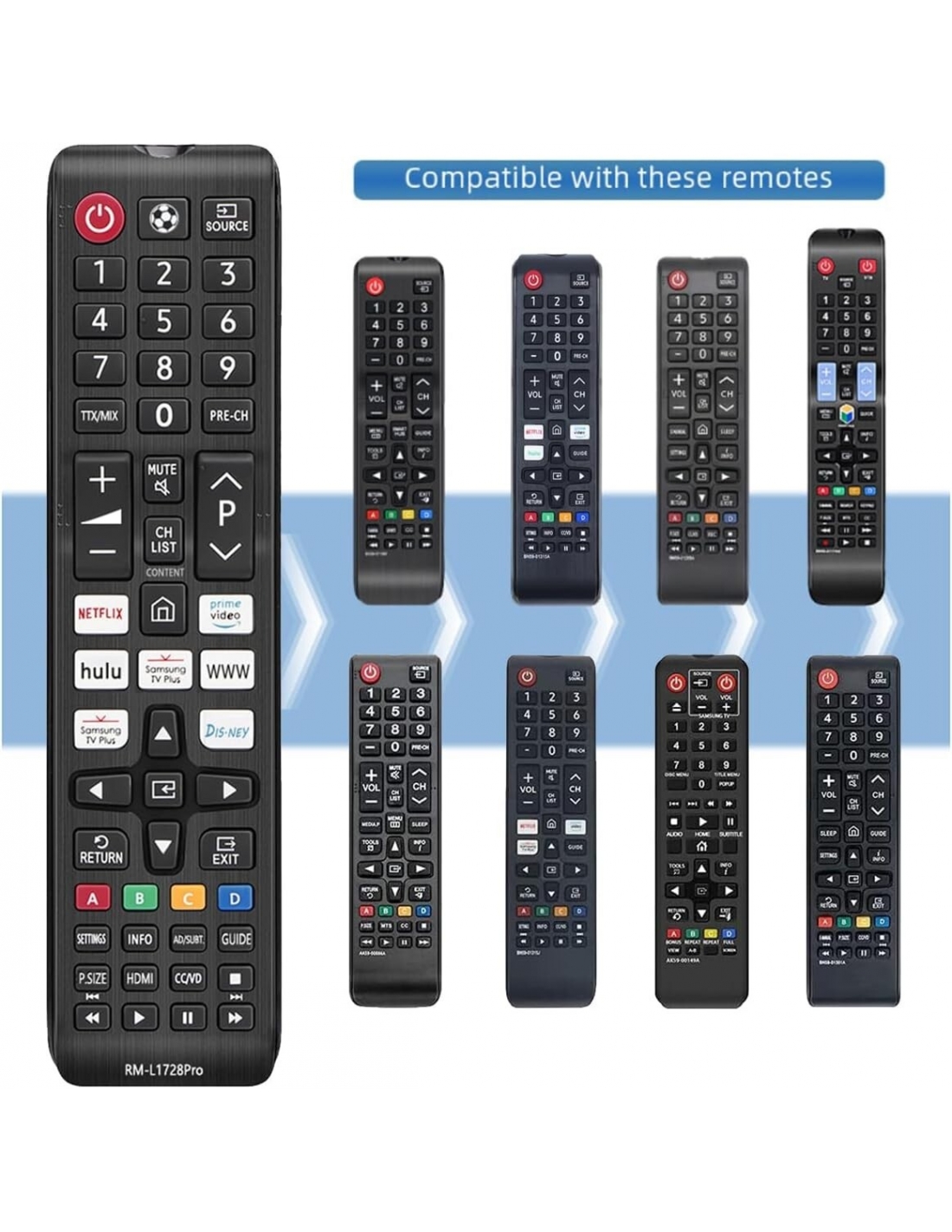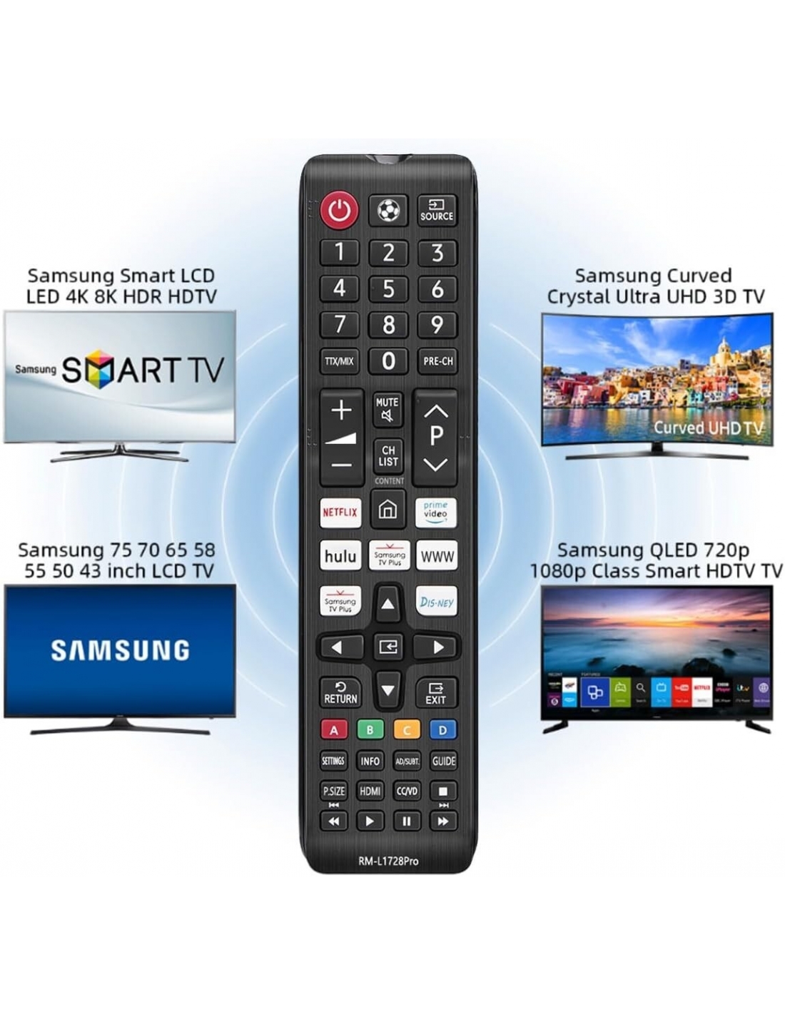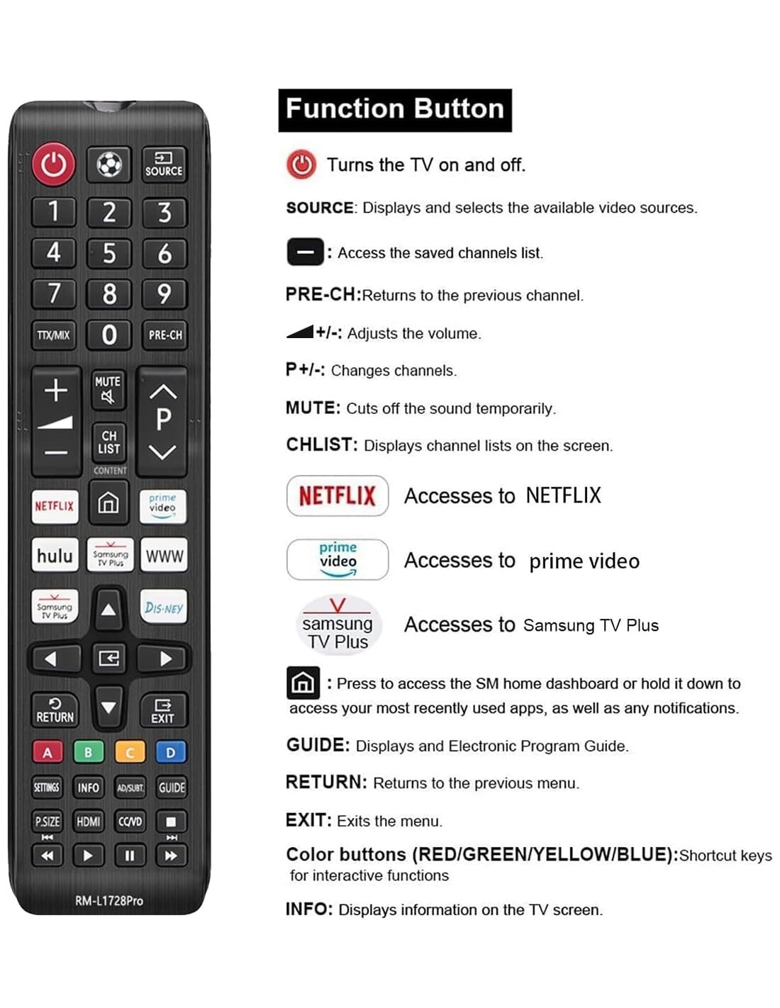RM-L1728 Pro Telecomando Compatibile Universale per Samsung Smart TV LCD LED UHD QLED 3D 4K HDTV HDR Netflix Prime video Rakuten-TV