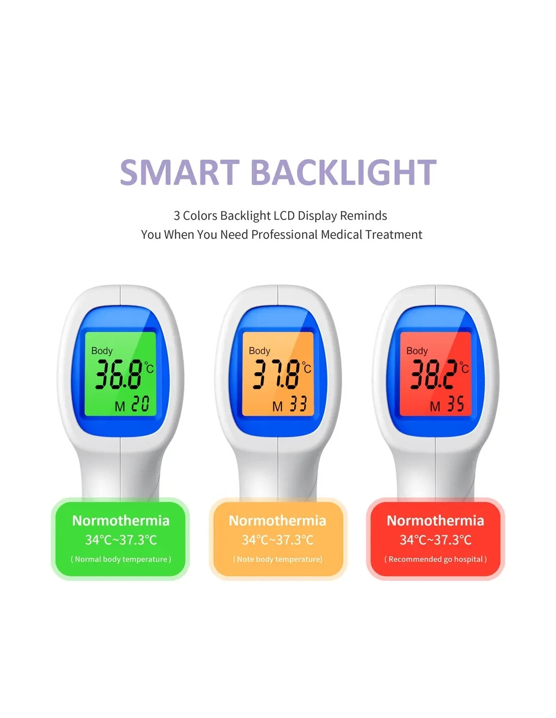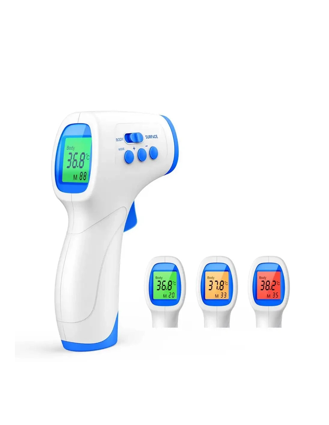 Modalità di misurazione: temperatura corporea e temperatura superficiale - intervallo di misurazione: 32 - 42,5 gradi. Modalità temperatura oggetto: 0 - 100 °C - Precisione di misurazione 0 - 31,9 °C: ± 2,0 °C 32 - 35 °C: ± 0,3 °C 35,1 - 39,0 °C: ± 0,2 °C 39,1 - 42,9 °C: ± 0,3 °C 43,0 - 100 °C: ± 2,0 °C - Misurazione del tempo: 0,5 secondi - Distanza di rilevamento: 5 - 8 cm - Precisione. Display: 0,1 °C - Risoluzione: ±0,1 °C.