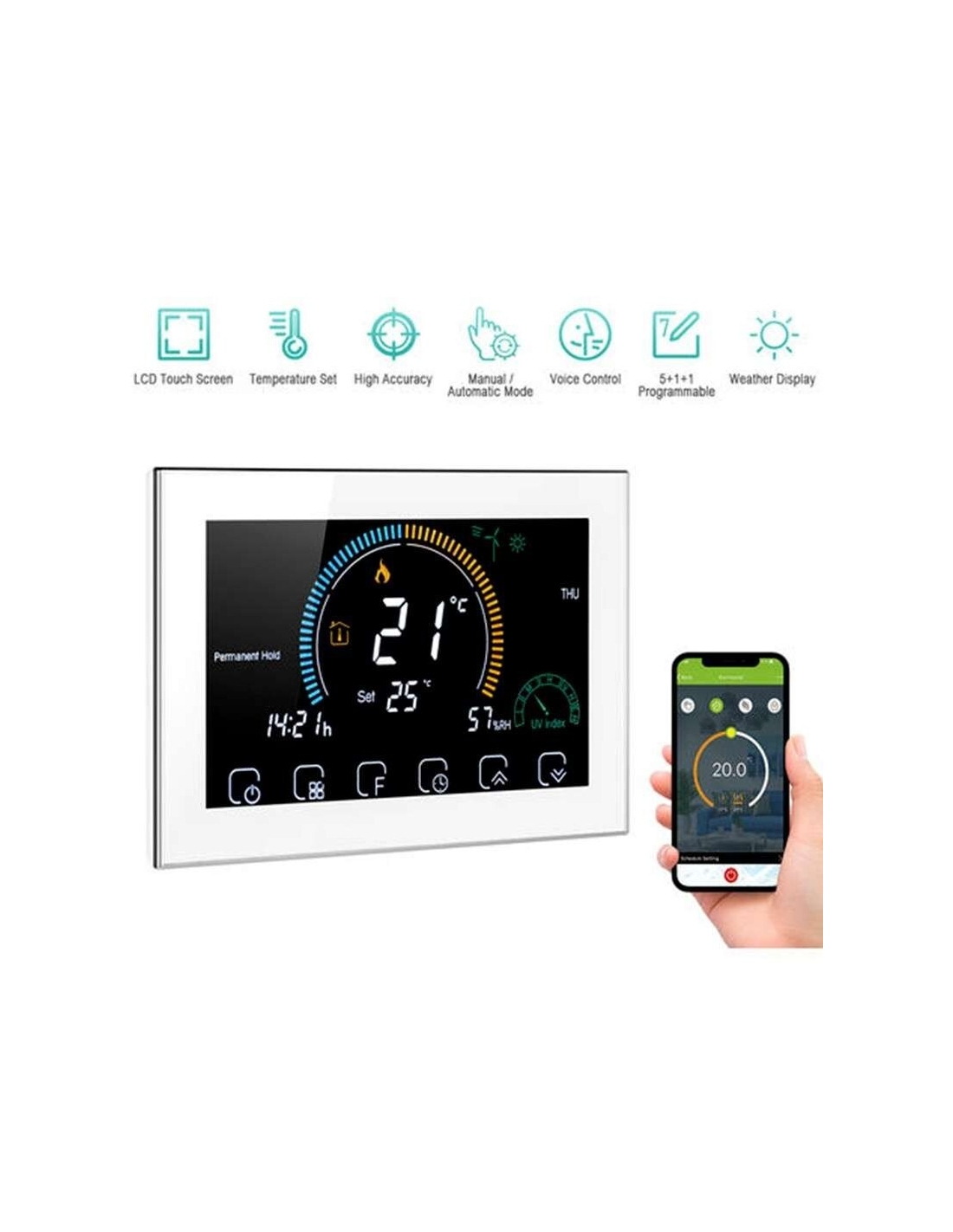 - Termostato ambiente per caldaia a gas,Il sensore di umidità integrato, la visualizzazione accurata dell'umidità, combinata con il tempo e l'indice UV, possono aiutarti a determinare cosa indossare oggi. La precisione di 1 ℃ mantiene la temperatura entro il livello impostato e ℃ o ℉ possono essere personalizzati.
