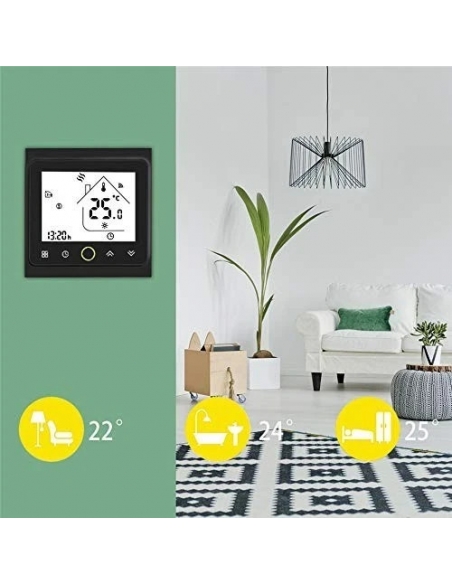 - 4. ★ PROGRAMMABILE: 5 + 1 + 1 sette periodi programmabili massimizzano il comfort e la strategia di risparmio energetico. gli orari programmati garantiscono una temperatura confortevole, l'interfaccia Ul facile potrebbe essere utilizzata anche da bambino