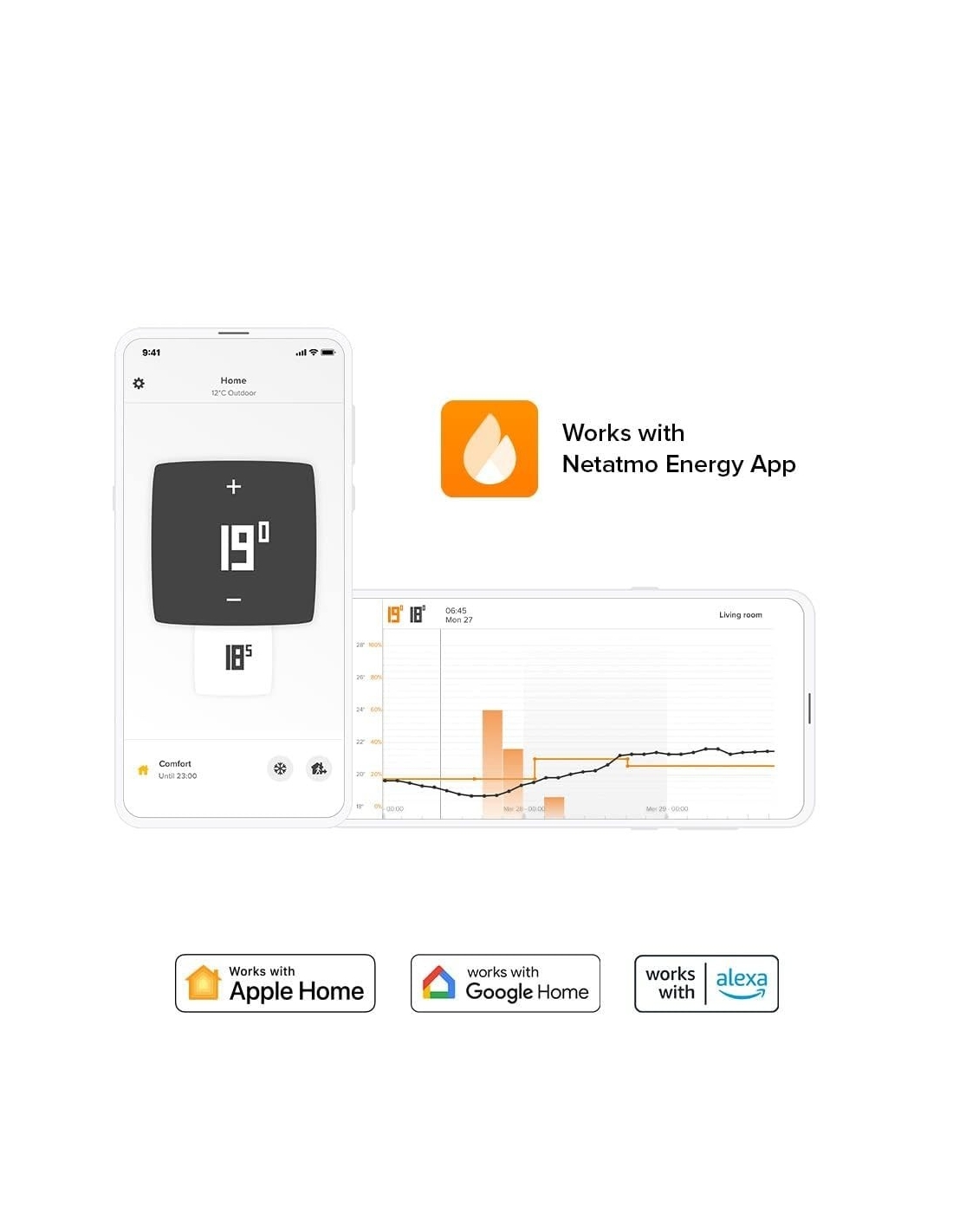 CONTROLLO A DISTANZA E CON LA VOCE: Comanda il tuo Termostato Intelligente da smartphone, tablet o computer. Compatibile con Apple HomeKit, Alexa e Assistente Google.