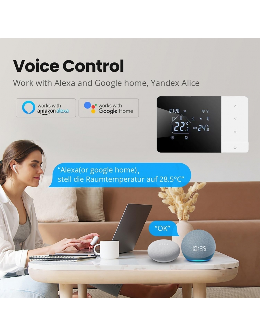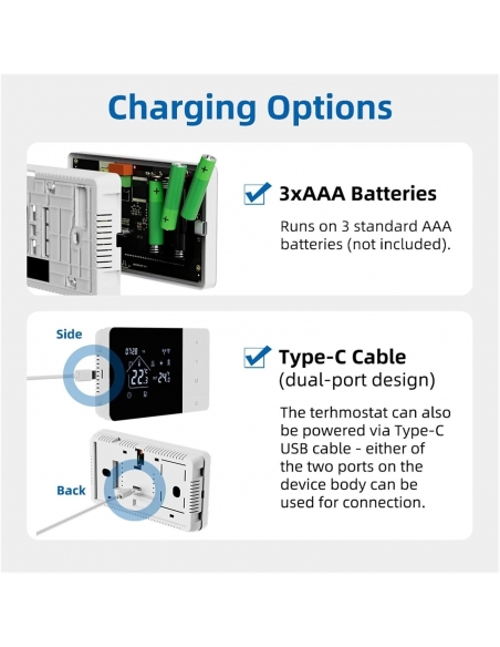 Hualans Termostato digitale WIFI a batteria Cavo Type c per caldaia a gas 2 fili