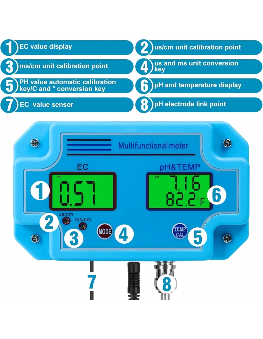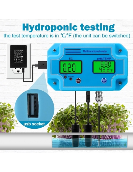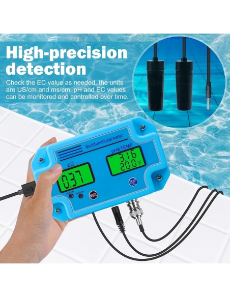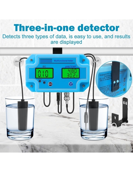 Misuratore PH, Rilevatore d'Acqua Professionale 3 in 1 PH/EC/Temp