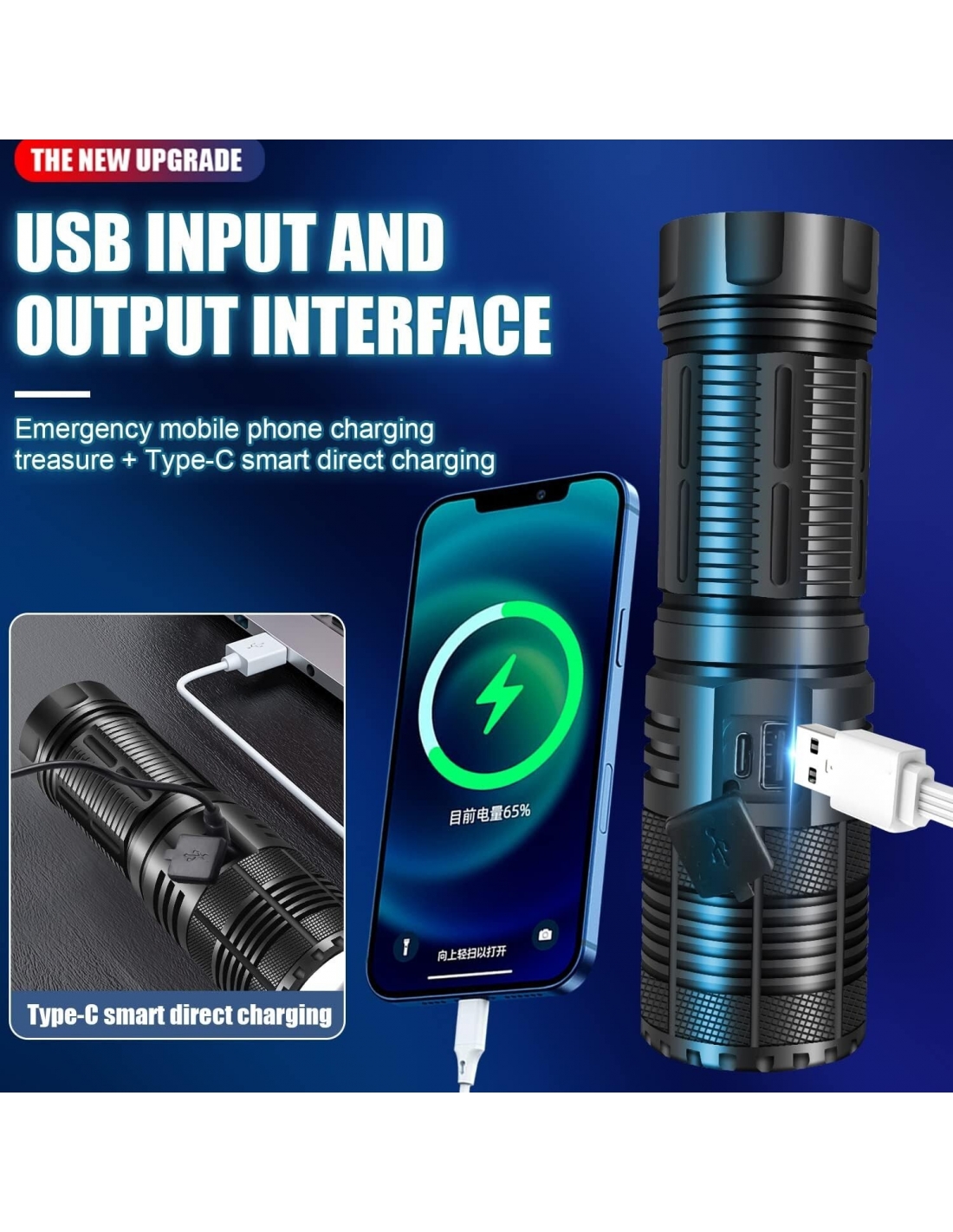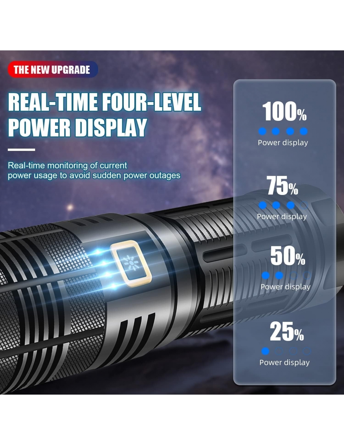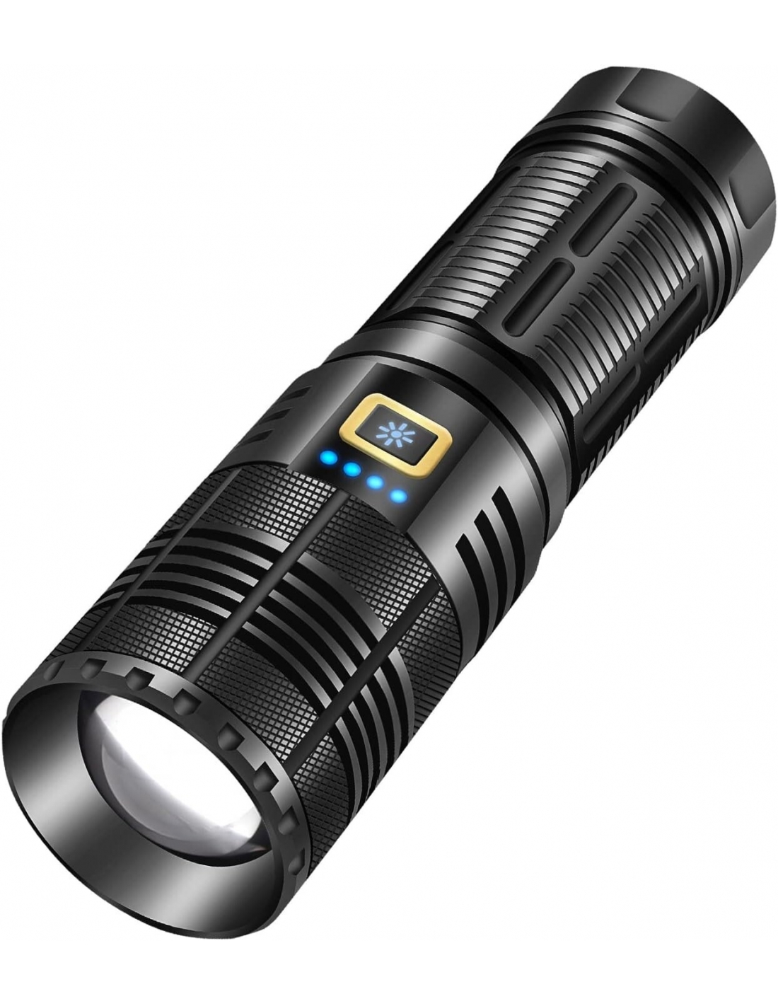- Queste torce di grande capacità sono dotate di batterie da 9000 mAh. Può essere utilizzato per 12 ore con una singola carica. Grazie all'esclusivo display della percentuale della batteria, non dovrai più preoccuparti della carica residua della batteria. Batteria integrata di grande capacità, ricarica rapida intelligente USB, ricarica più rapida e anche ricarica del telefono cellulare per le emergenze.