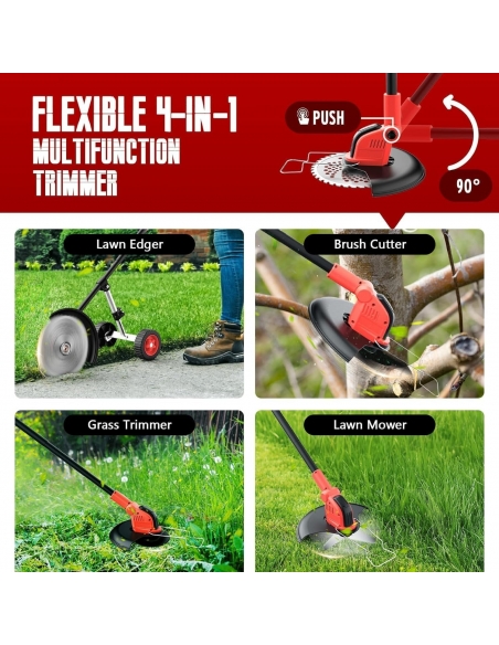 - 【Tagliabordi con batteria 2025】 il decespugliatore 4 in 1 aggiornato del 2025 è dotato di 4 diversi pettini di taglio e 2 batterie da 3000 mAh per soddisfare diversi scenari. Il tagliaerba a batteria dispone di una larghezza di taglio di 12 pollici e di una batteria da 3000 mAh senza fili. batteria taglierina è anche Dotato di un motore brushless da 800 W, la velocità del tosaerba elettrico può raggiungere i 20000 giri/min, il che rende il giardinaggio molto più facile.
