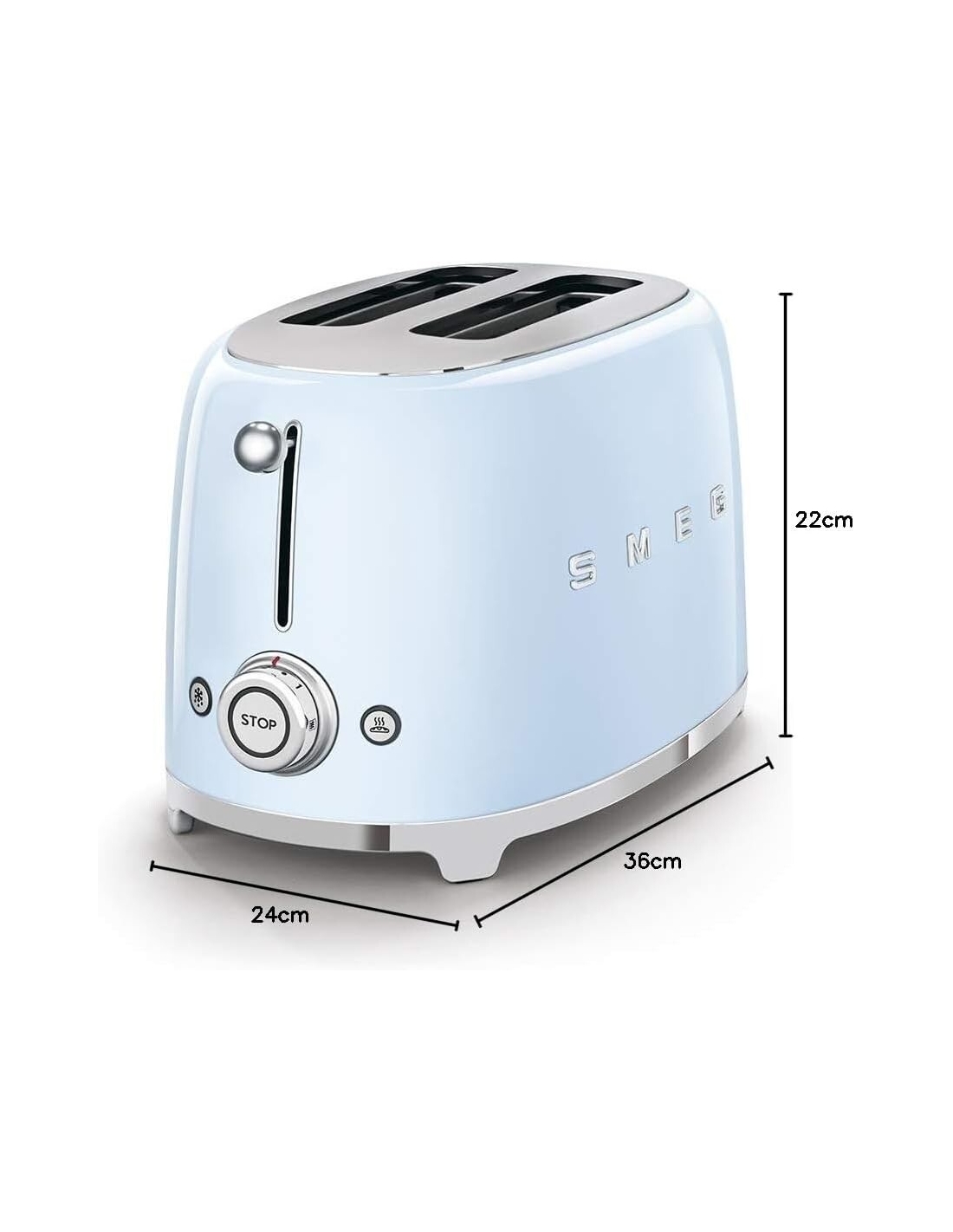 Smeg Tostapane 2x2 TSF01PBEU 2 Scomparti da 36mm 6 Livelli di Doratura Funzione Riscaldamento Scongelamento e Bagel Espulsione Automatica del Pan, Cassetto Raccoglibriciole 950W Azzurro