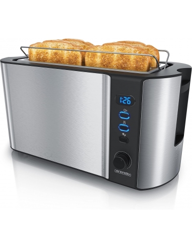 - Il tostapane Brandson da 1500 W ha due lunghe fessure, che consentono di tostare 4 fette contemporaneamente. Inoltre, il tostapane Brandson Frukost non è SOLO una buona scelta in termini di tecnica di alta qualità, ma è anche un elemento accattivante grazie al suo design elegante. La centratura automatica del pane assicura che entrambi i lati del pane siano dorati in modo uniforme. | Massima comodità: Massima praticità: Il display mostra il tempo rimanente e il livello di tostatura selezionato.