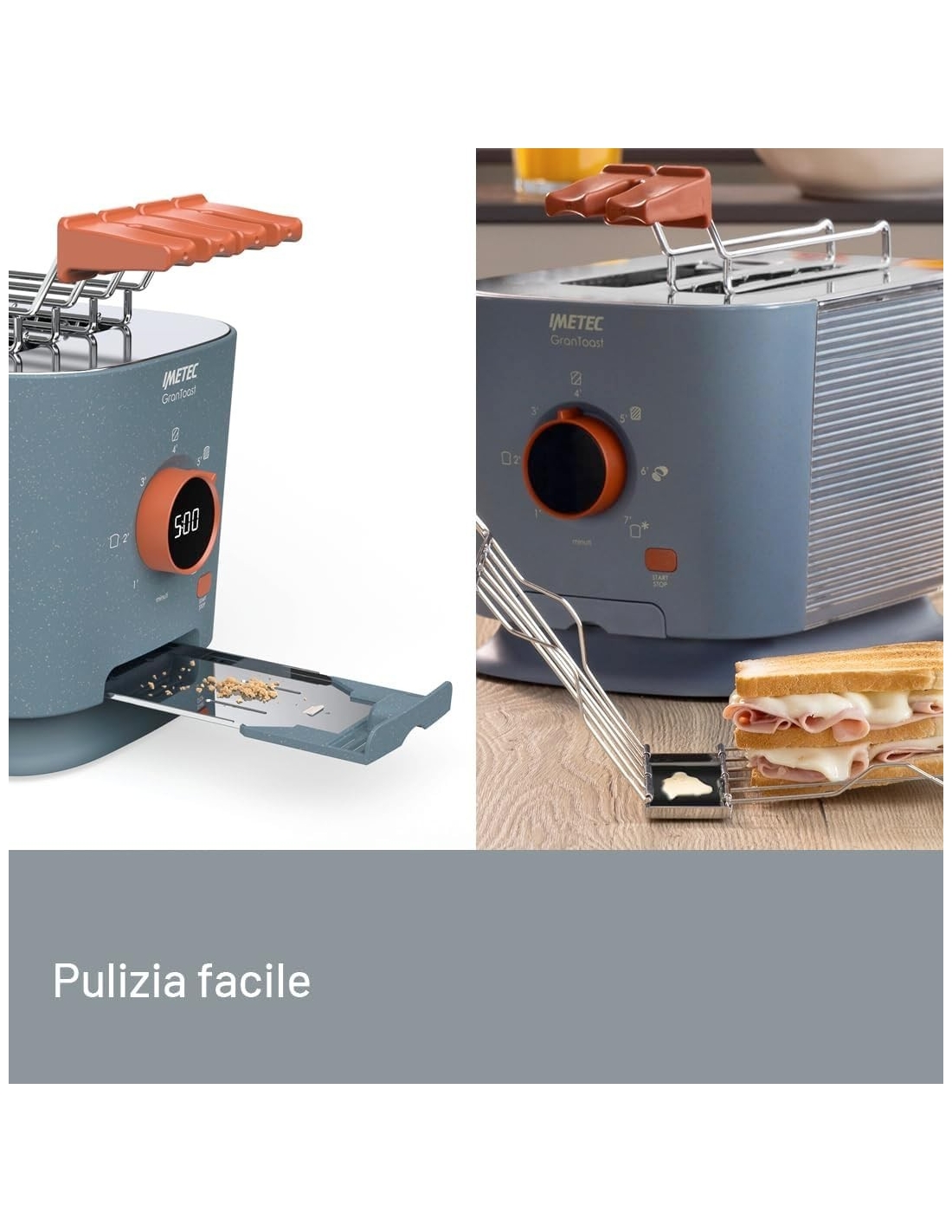Imetec Grantoast - Tostapane 2 Fette XL con Pinze Apribili per Toast Farciti