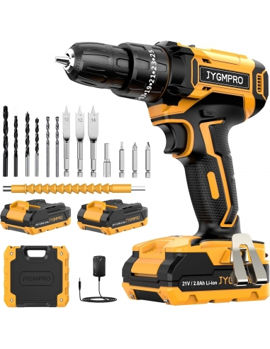 JYGMPRO Trapano Avvitatore 2 Batteria 21V 2.0Ah 42N.m 2 Velocità 14 Accessori.