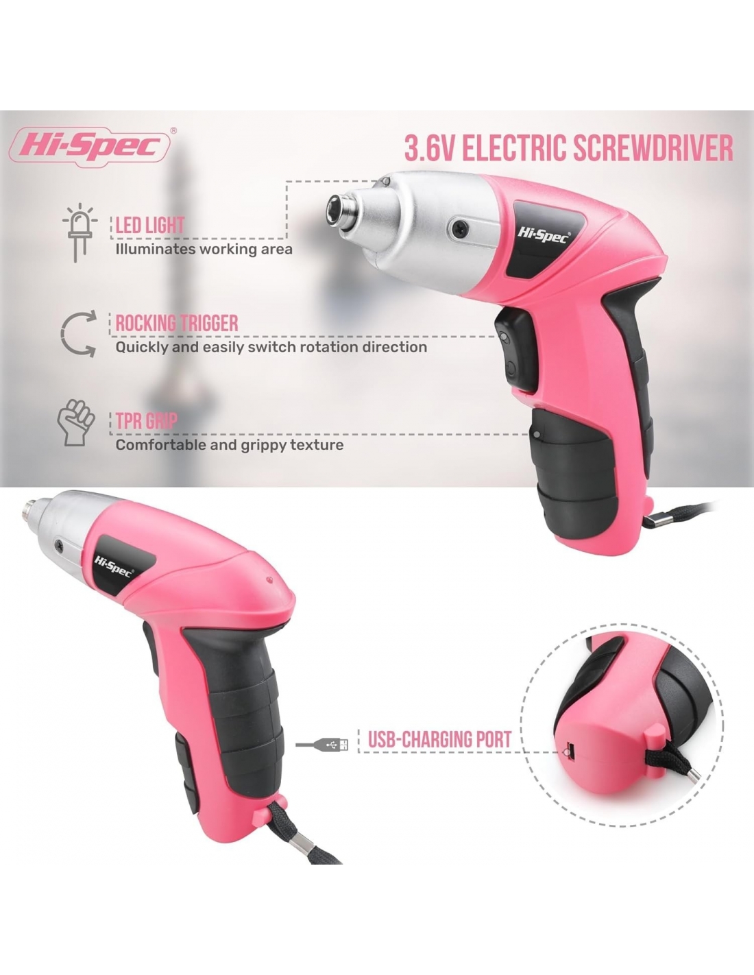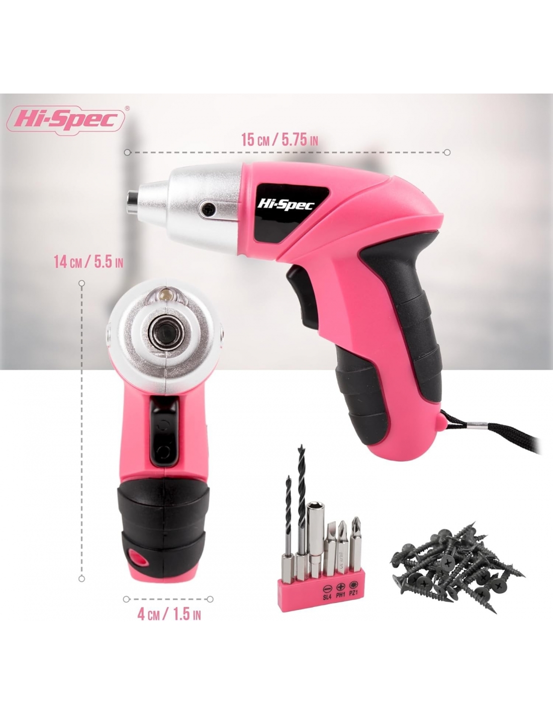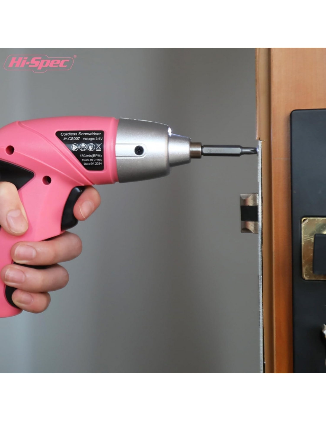 - RISPARMIA QUELLE MANI STANCHE: Aggiungi un tocco di colore con l’avvitatore elettrico a batterie Hi-Spec Rosa da 3,6V. Un cacciavite elettrico portatile automatico per l’avvitamento veloce nei lavori di casa, per il fai da te, e per l’assemblaggio veloce di mobili. Nota Bene: Questo utensile non è adatto per la perforazione