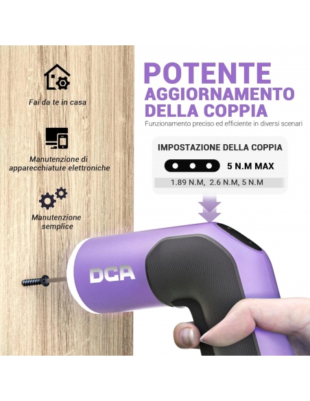 - Motore potente ad alta velocità - Il mini cacciavite DCA ha un motore ad alte prestazioni con una velocità massima di 270 giri/min, ideale per avvitare su legno, metallo e plastica