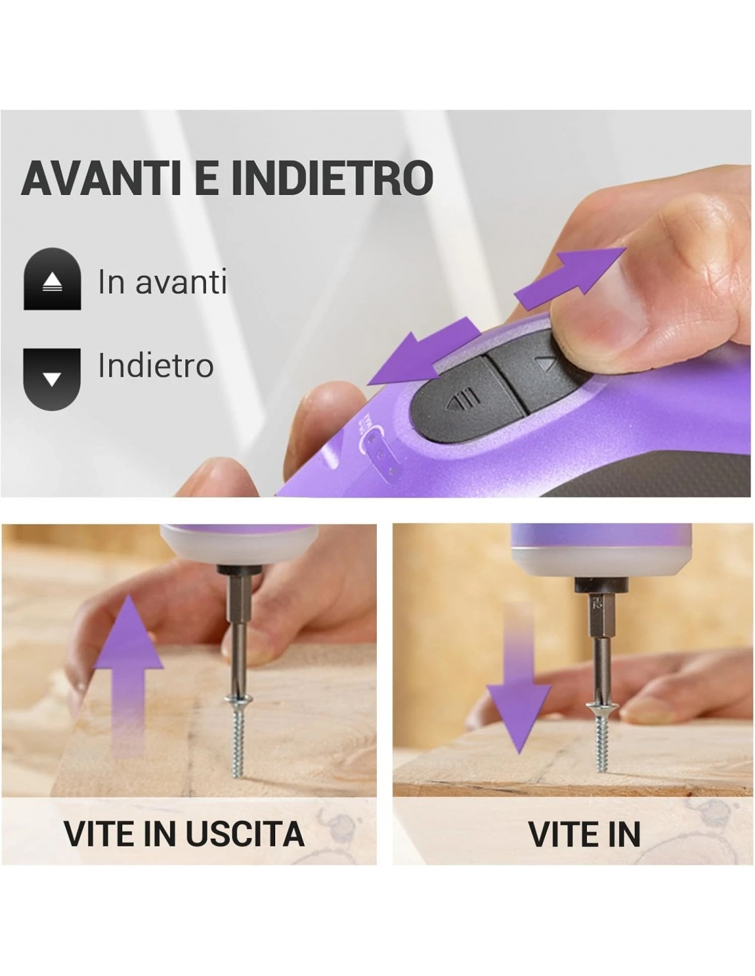 - Batteria a lunga durata da 2000mAh - Dotato di batteria ricaricabile agli ioni di litio da 2000mAh, il cacciavite senza fili può avvitare oltre 190 viti con una sola carica. Perfetto per il montaggio di mobili e progetti fai-da-te. La porta di ricarica USB-C consente una ricarica comoda in qualsiasi momento e ovunque