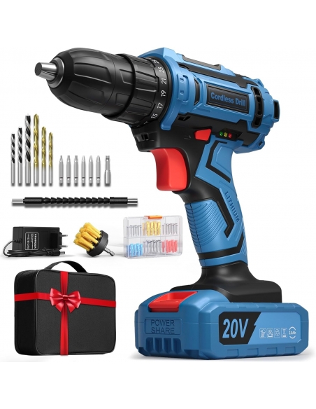 - Set di accessori aggiornato tutto in uno: 3 punte affilate per la lavorazione del legno, 3 punte elicoidali, 6 punte per cacciavite, 1 prolunga per punte per cacciavite, 1 asta flessibile allungata, 1 testa a spazzola, 60 viti a espansione. La leggera borsa portautensili contiene il trapano a batteria e tutti gli accessori. Comoda da portare in giro!