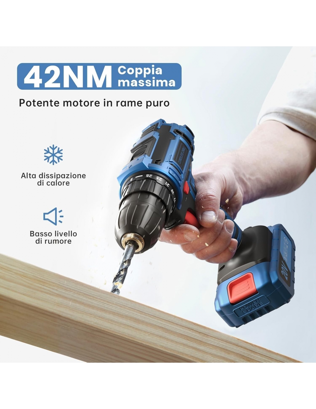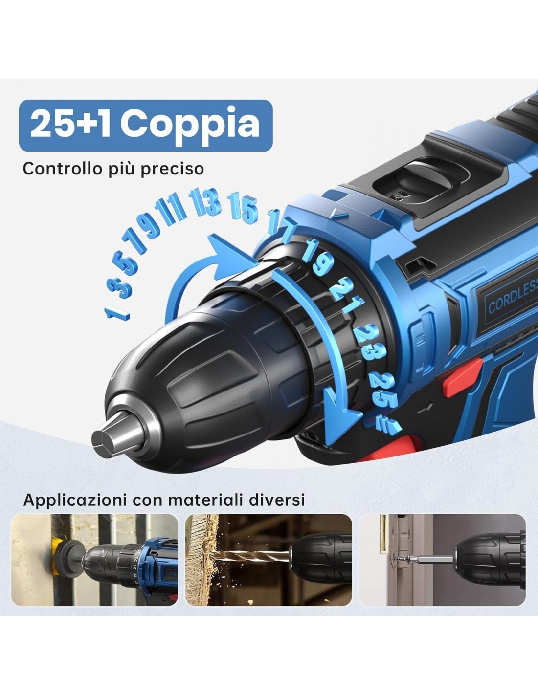 - Realizziamo ogni dettaglio con attenzione:La direzione di rotazione del trapano può essere commutata in modo flessibile tra rotazione avanti e indietro; la custodia per il trasporto è leggera e resistente, offrendoti un'esperienza portatile e protezione; luci a LED di alta qualità illuminano l'oscurità, anche al buio puoi lavorare facilmente; L'impugnatura ergonomica migliora il comfort della presa e riduce l'affaticamento