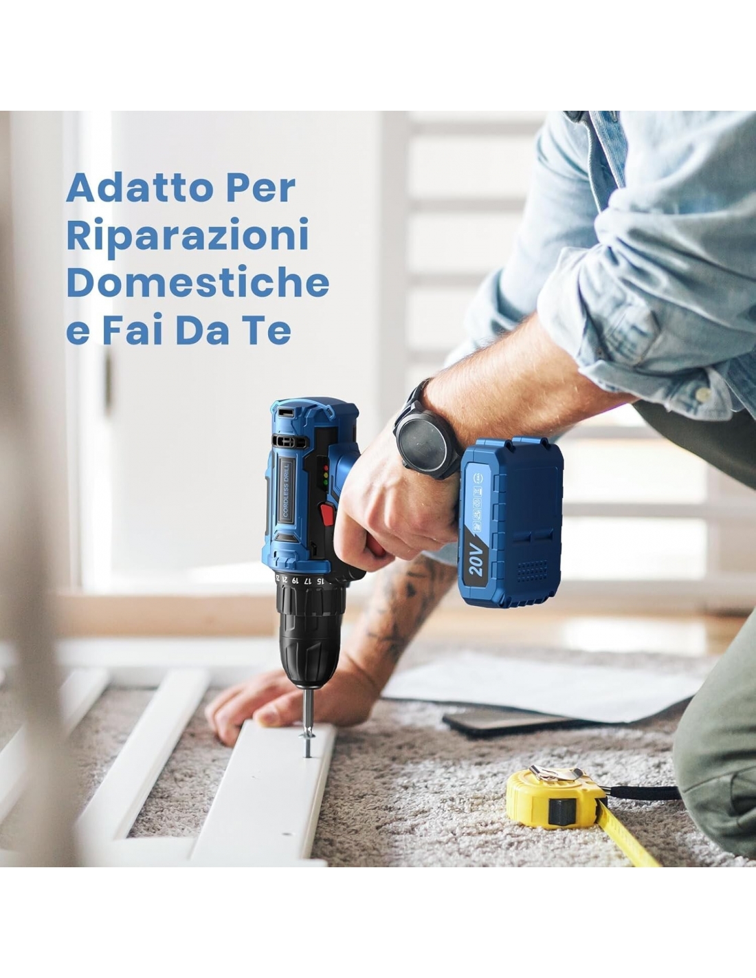 FAHEFANA Avvitatore a Batteria, Trapano Avvitatore Batteria, 20V 2.0Ah Trapano, 25+1 Trapani Avvitatori Elettrico, 75 Accessori, 2 Velocità, LED Luce, Adatto per Riparazioni Domestiche, Fai da te, Regali