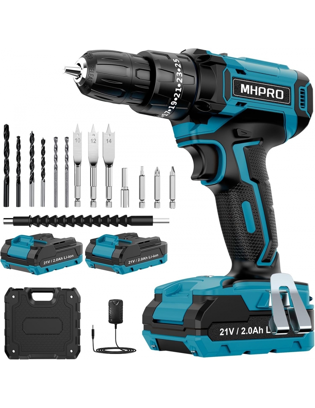 MHPRO Trapano Avvitatore Batteria 21V, con 2 Batterie da 2.0Ah