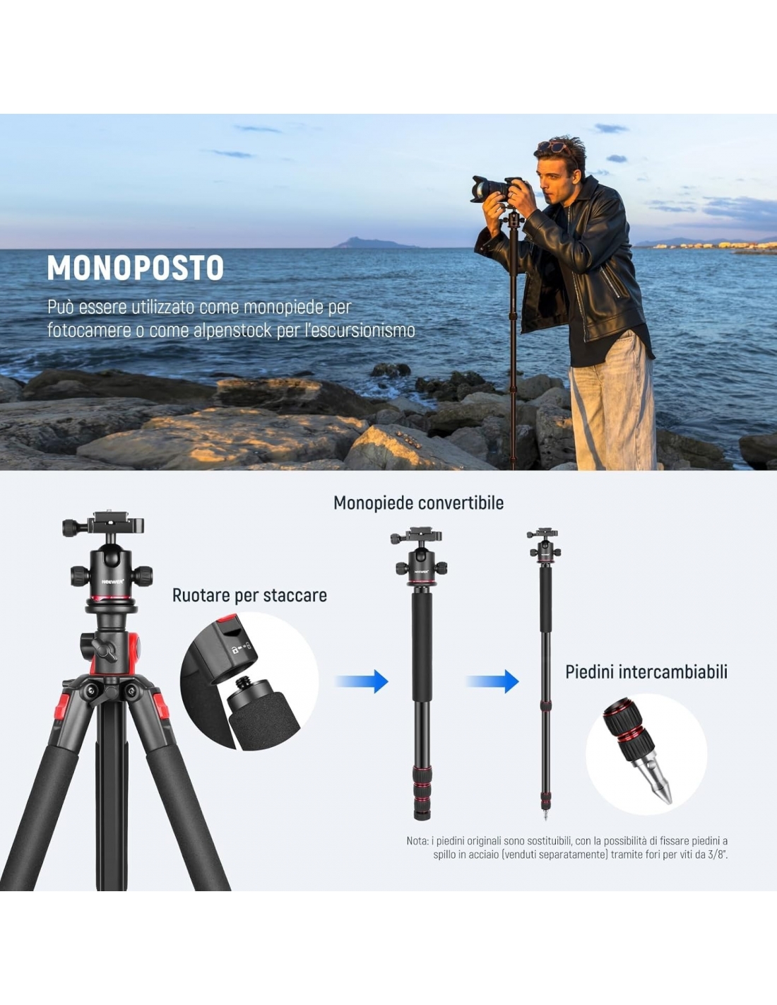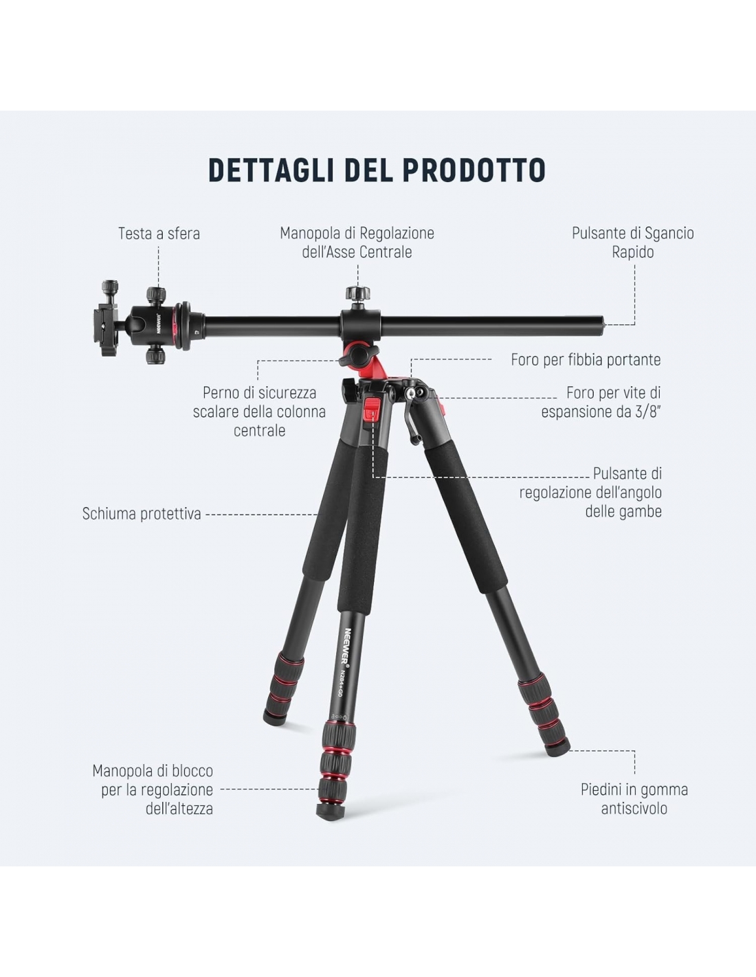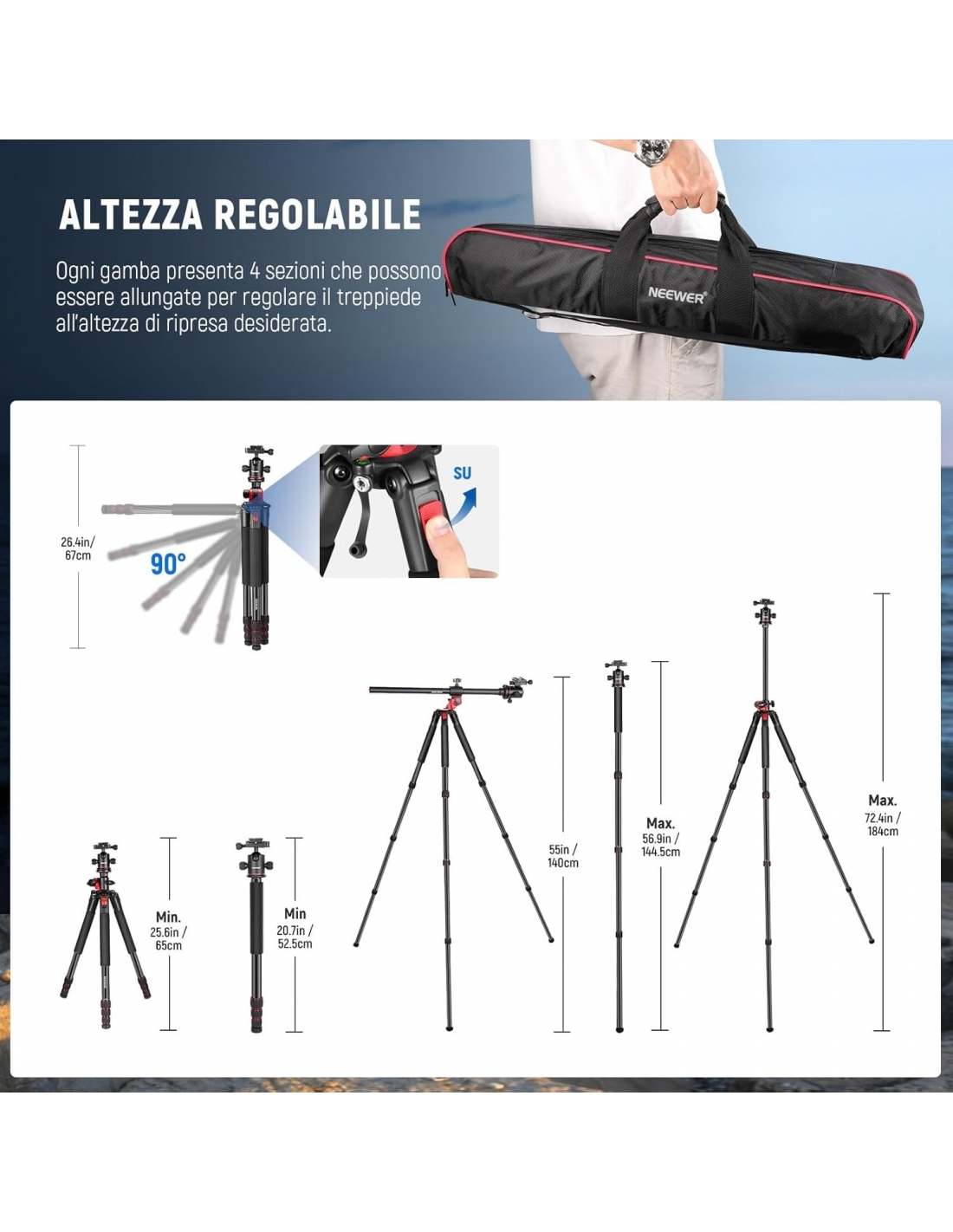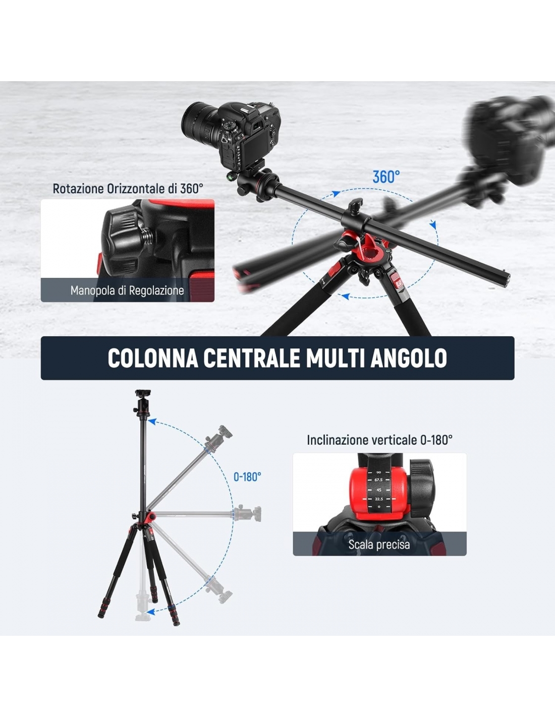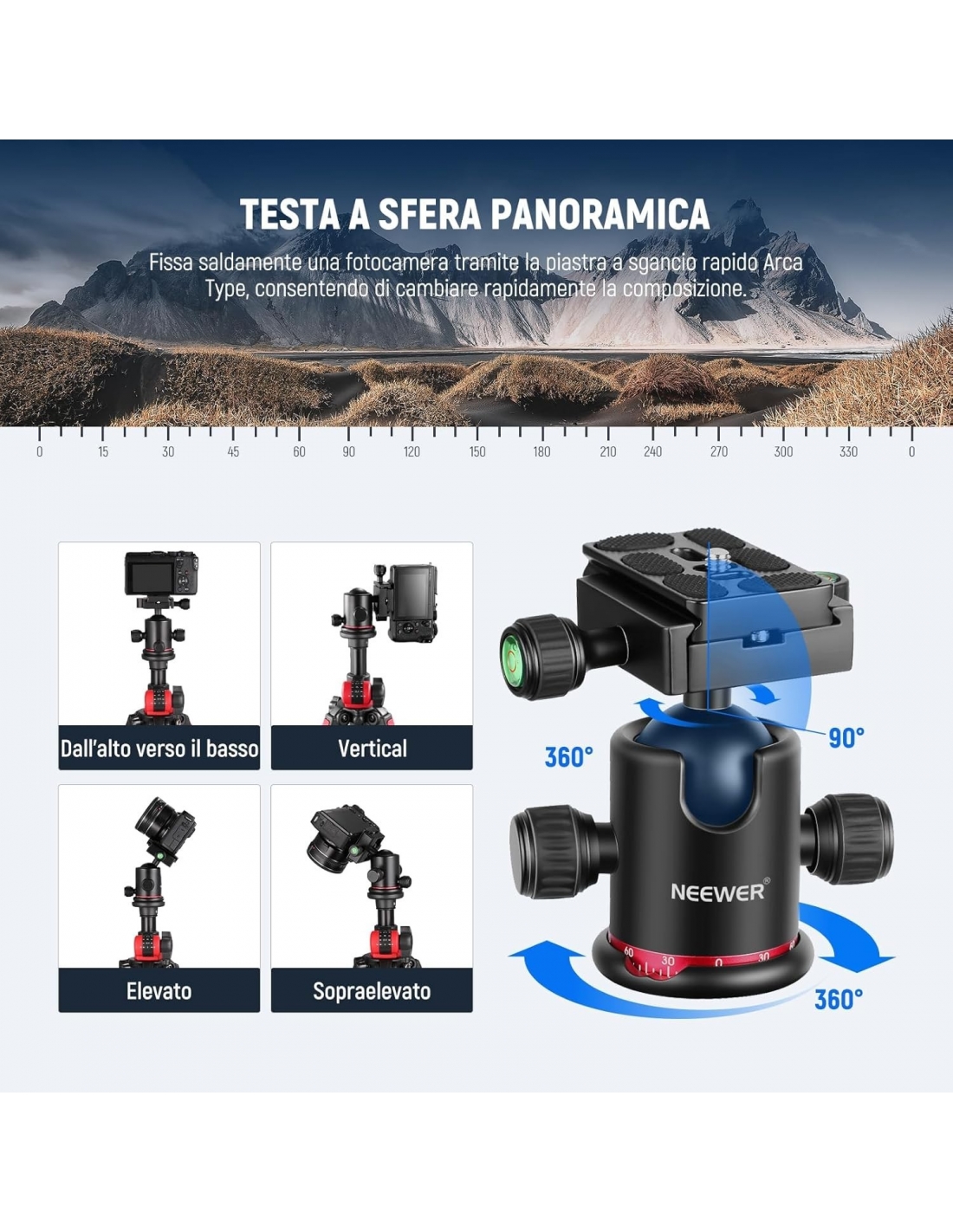 NEEWER Treppiede Fotocamera con Colonna Centrale e Testa a Sfera in Allumininio