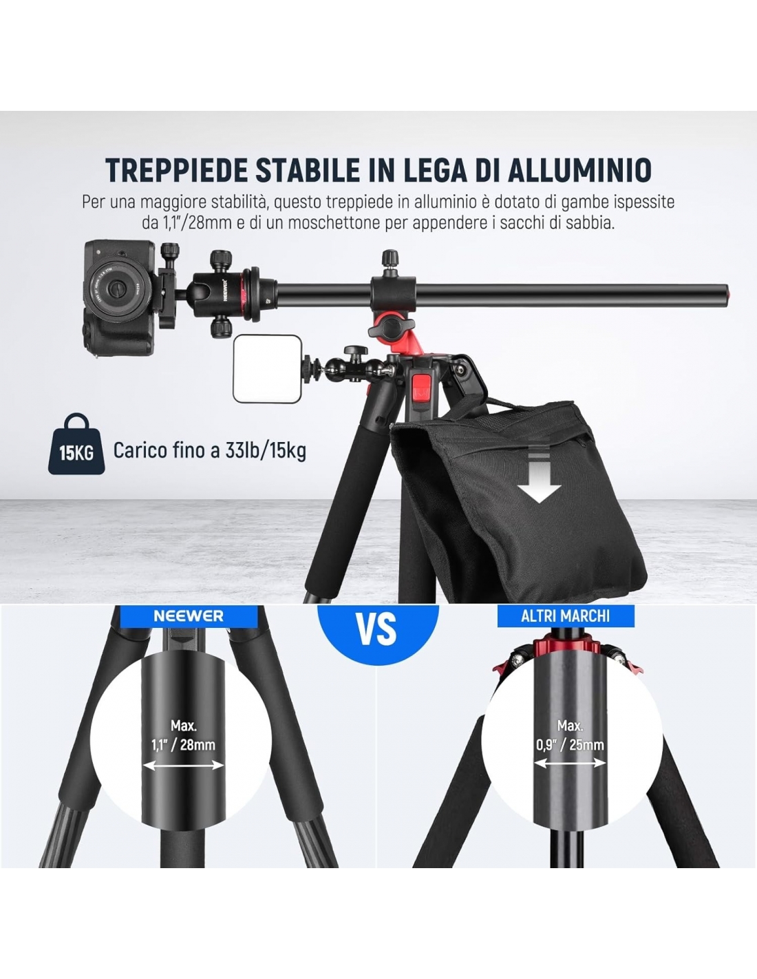 NEEWER Treppiede per Fotocamera con Colonna Centrale e Testa a Sfera in Alluminio, Piastra QR Tipo Arca, Borsa, Treppiede Braccio Orizzontale per Fotocamera DSLR, Videocamera, Max 33lb