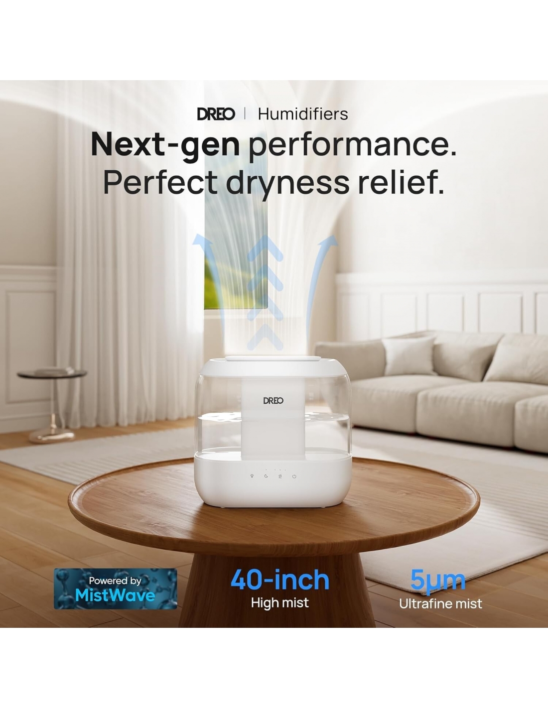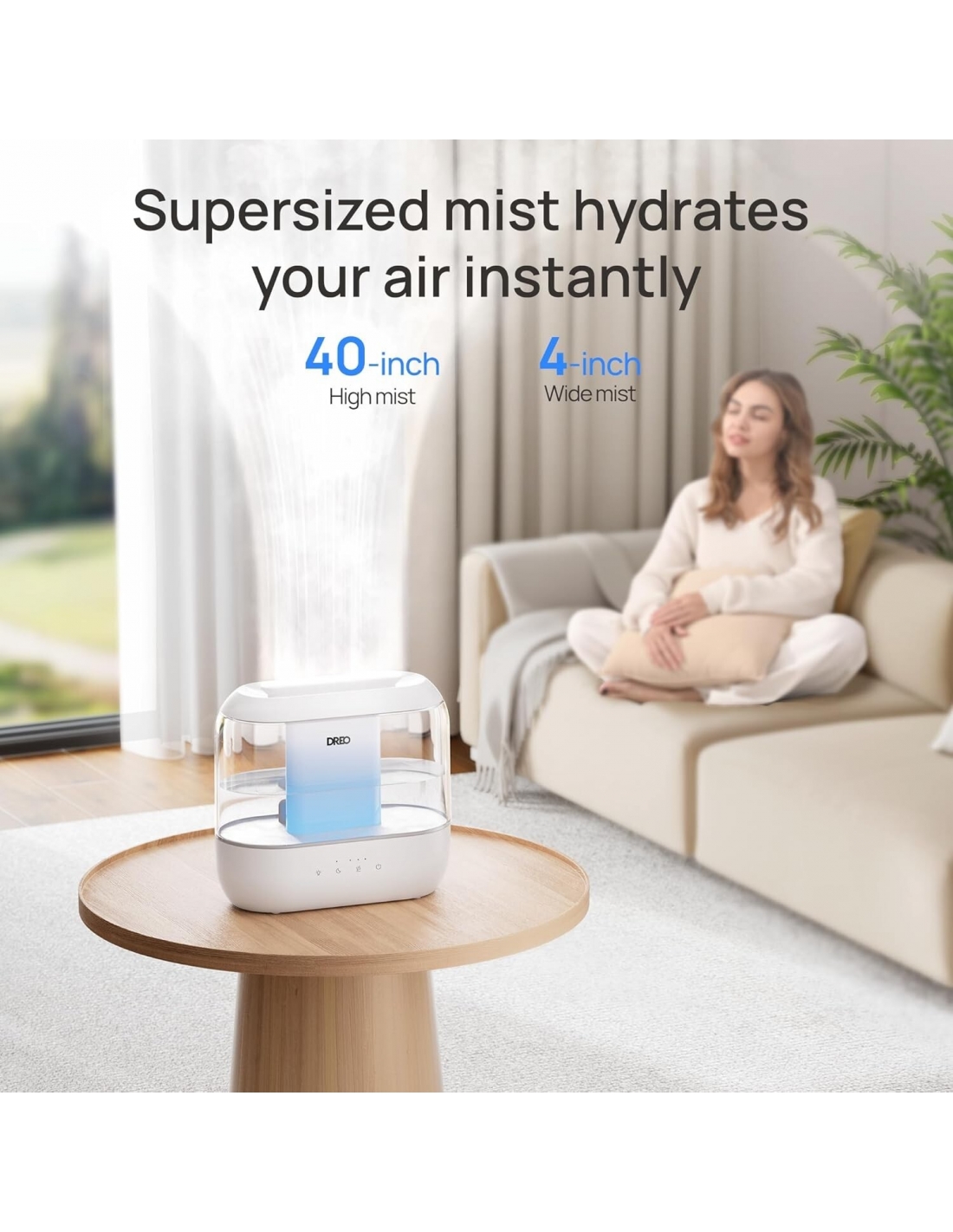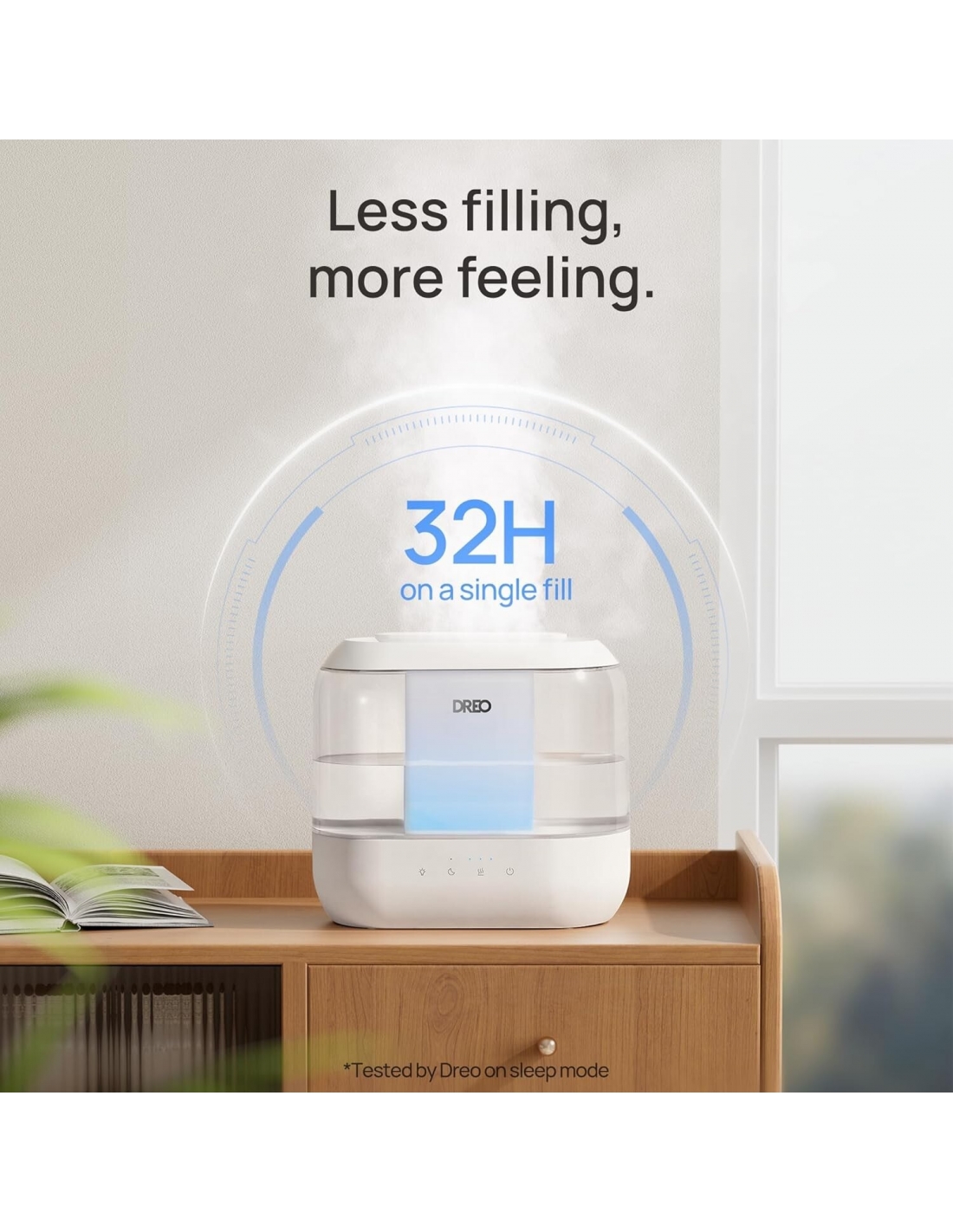 - Serbatoio grande 4L per un comfort continuo: La nebulizzazione a ultrasuoni di Dreo riduce il rumore a 28dB, mentre il serbatoio da 4L fornisce fino a 32 ore di umidità senza bisogno di riempirlo.