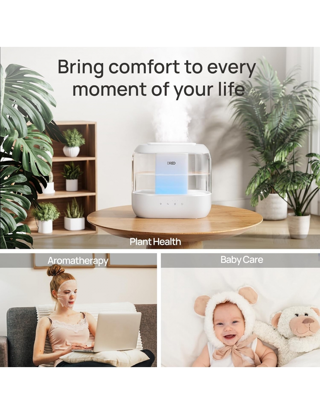 Dreo Umidificatore Ambiente 4L Ultra Silenzioso Oli Essenziali Casa Bambini