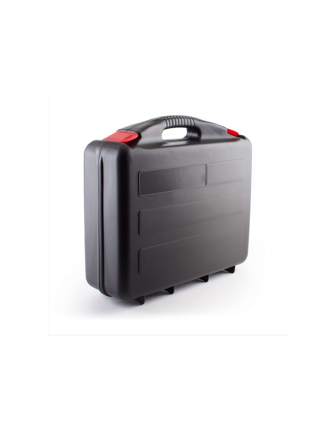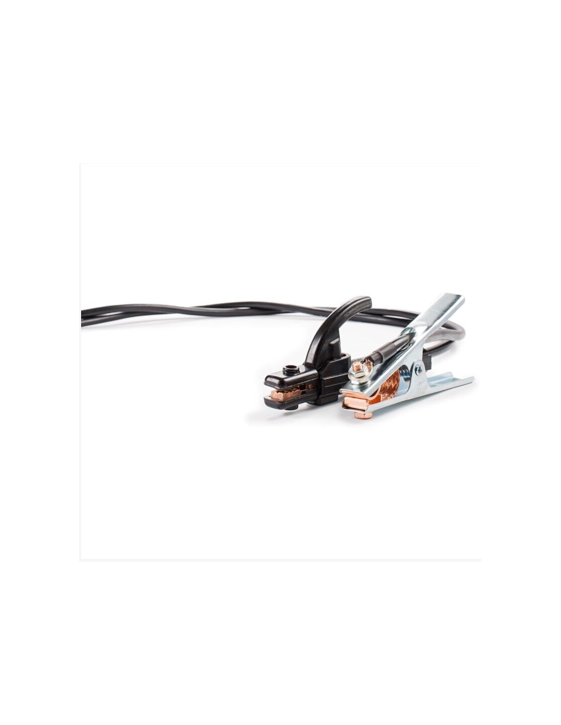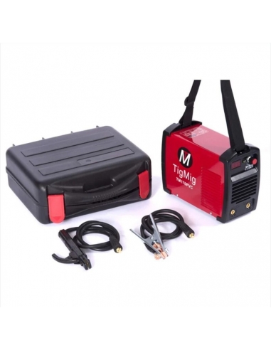 La macchina viene fornita in una pratica e robusta valigia in pvc, che protegge la macchina nella rimessa in deposito, unitamente al kit di accessori cavo di massa, pinza porta elettrodi. Collegabile anche a un motogeneratore.
