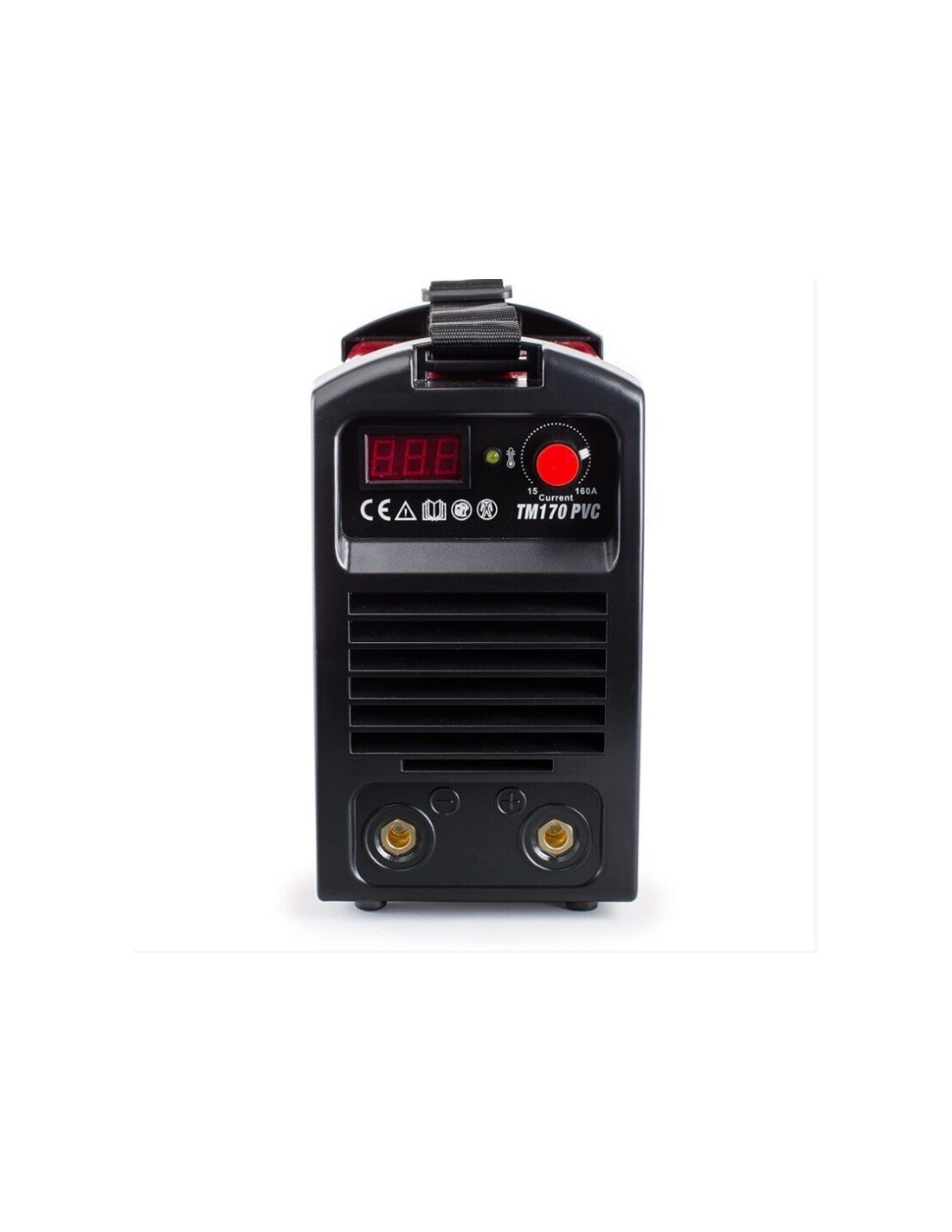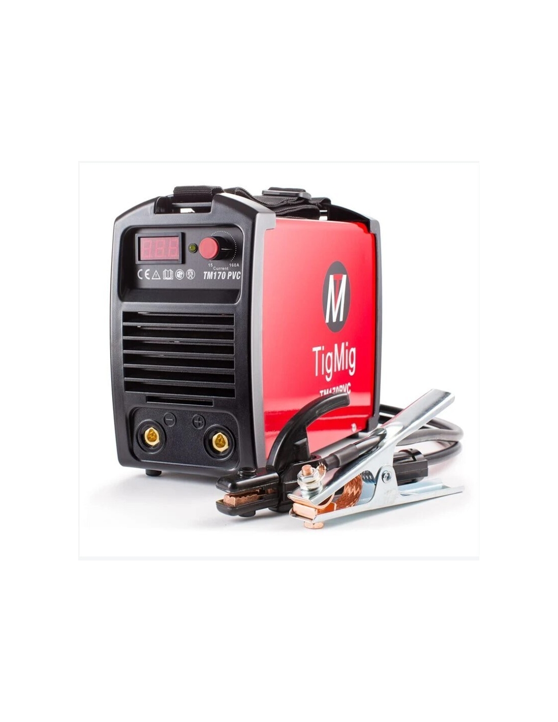TM 170 PVC è una saldatrice ad inverter portatile per saldatura MMA e per saldatura con elettrodo rivestito. Viene prodotta con tecnologia avanzata IGTB che aumenta l'efficienza della macchina. La solidità dei suoi componenti la rende uno strumento di lavoro affidabile per impieghi in officina e all' esterno.