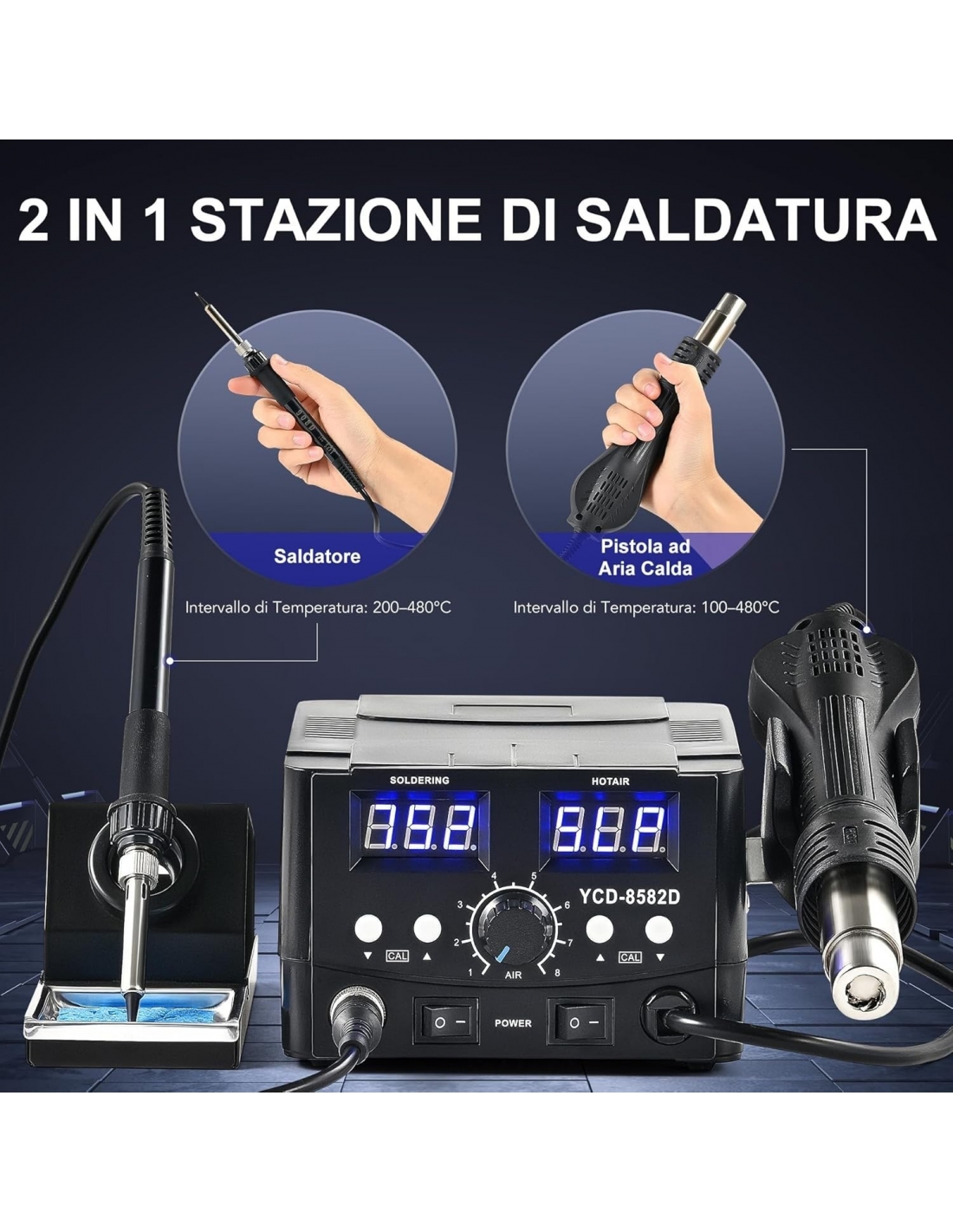 CREWORKS 750W Stazione Saldante Digitale SMD 2 in 1 Saldatura con Schermi a LED Alimentazione Eettrica Saldatura ad Aria Calda Kit di Strumenti Stabilità della Temperatura