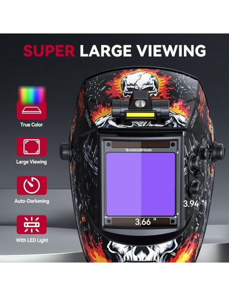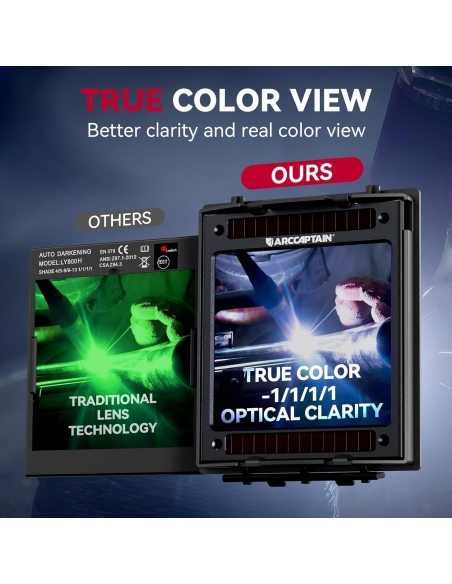 ARCCAPTAIN LYG-0K-800H casco per saldatura auto oscurante ad energia solare, cappuccio per saldatura a colori veri, casco per saldatore con chiarezza ottica 1/1/1/1, 4 sensori ad arco largo 4/5-9/9