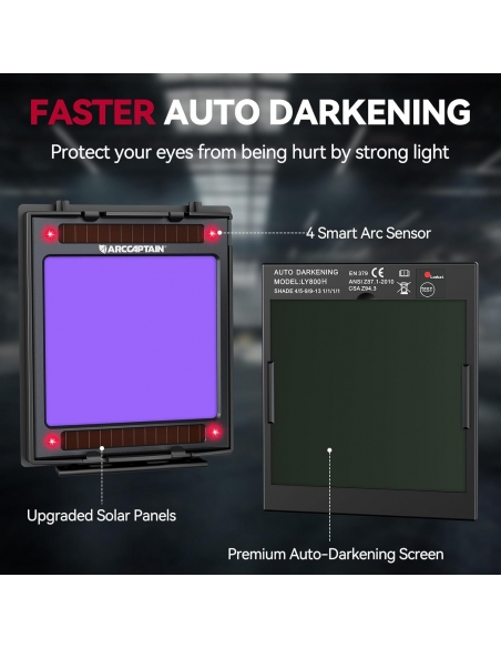 ARCCAPTAIN LYG-0K-800H casco per saldatura auto oscurante ad energia solare