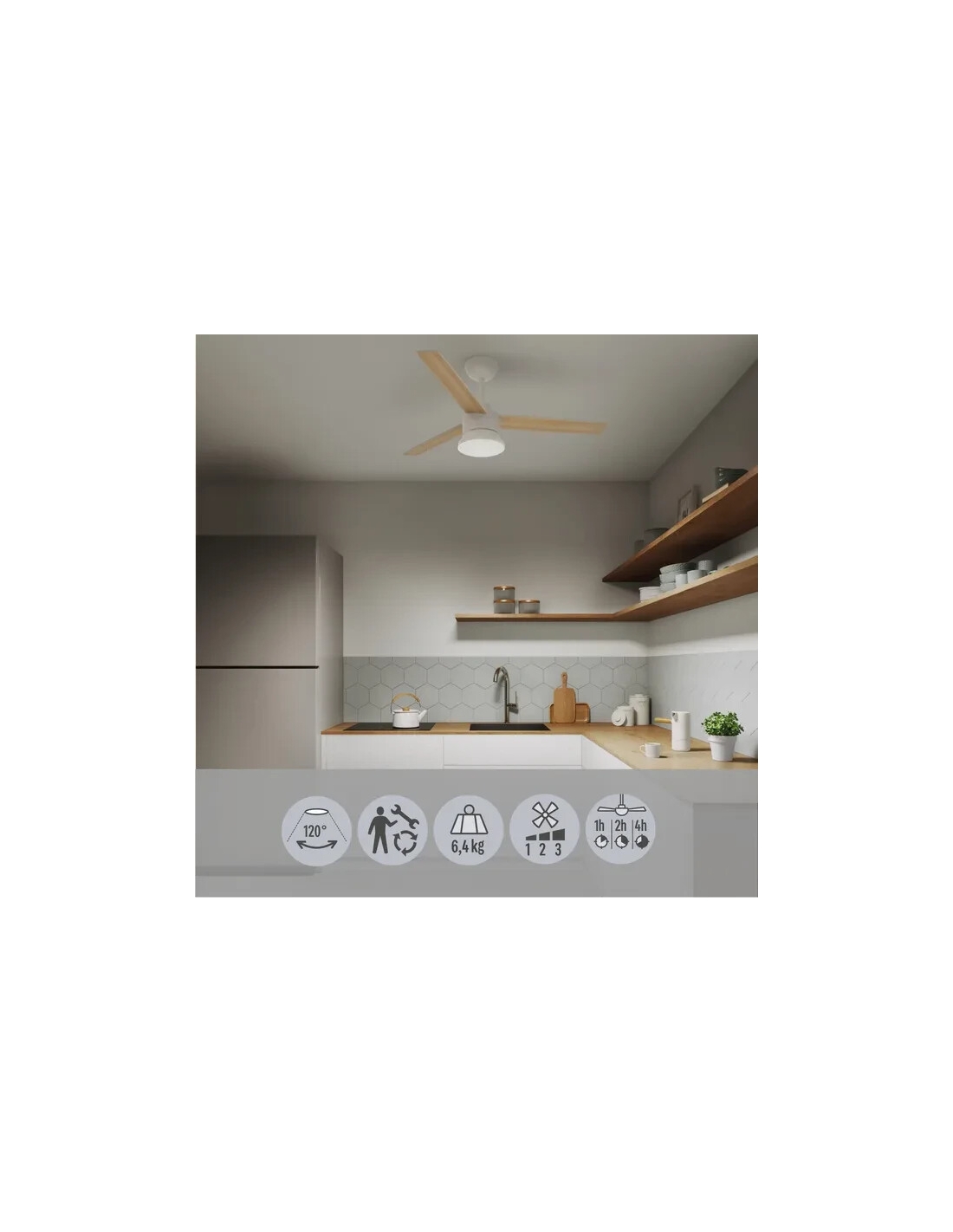 Ventilatore da soffitto LED con 3 pale in legno, serie Notos. Diametro 106 cm, 2000 LM 4000K. In acciaio e legno. Colore Bianco. Grazie al telecomando incluso, puoi regolare l'intensità della ventilazione tra 3 velocità (bassa, media, alta) e programmare il tempo di ventilazione desiderato (continua, per 1h, 2h, 4h). Notos è un prodotto LED integrato che fornisce un'illuminazione da 2300LM e 4000K. Puoi cambiare il colore delle lame a seconda dei tuoi gusti e desideri: legno di faggio nella parte superiore e bianco nella parte posteriore. Questo prodotto può essere fissato a un soffitto inclinato di 15°. Prodotto riparabile, progettato per durare nel tempo. Disponibili pezzi ricambio (Driver+piastra Led, diffusore+RC). Garanzia 5 anni. Grazie alla sua riparabilità garantirà una soluzione ecologica per l'ambiente. Assenza di polistirolo nella confezione, l'imballaggio è ottimizzato per ridurre l'impatto sull'ambiente. Il legno utilizzato per la produzione di questo prodotto è certificato FSC, proviene da foreste gestite in modo sostenibile e responsabile.