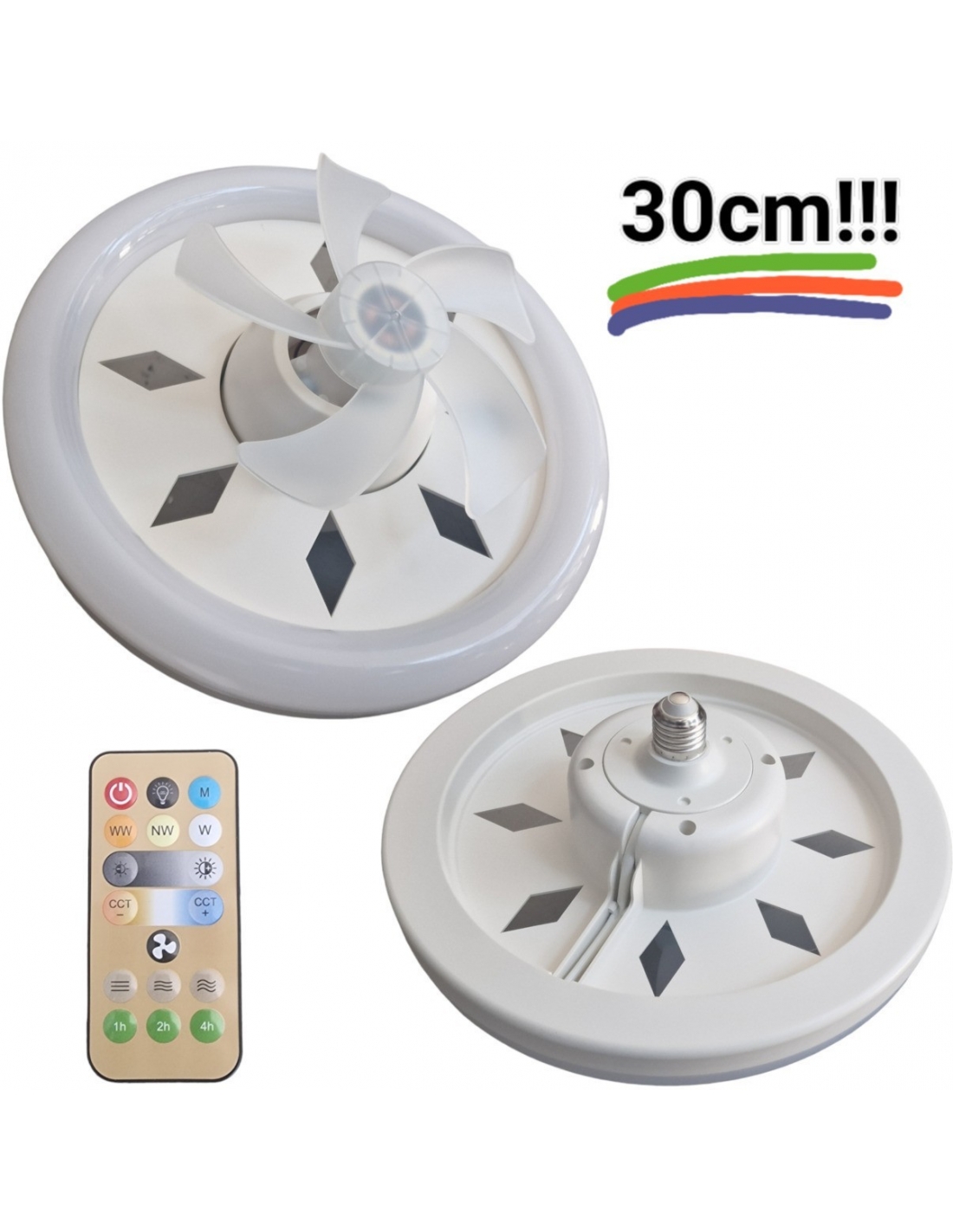 - Multifunzionale: il design 2 in 1 funziona come una luce LED con adattatore E27 e una ventola con una testa della lampada ruotabile di 360 gradi, viene fornito con un telecomando e funziona con tensione AC85V-265V facile espansione.