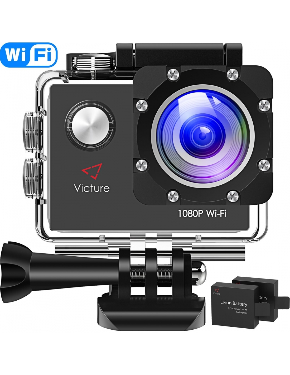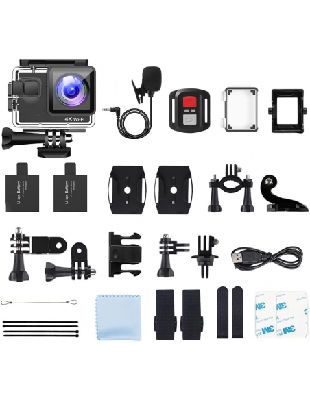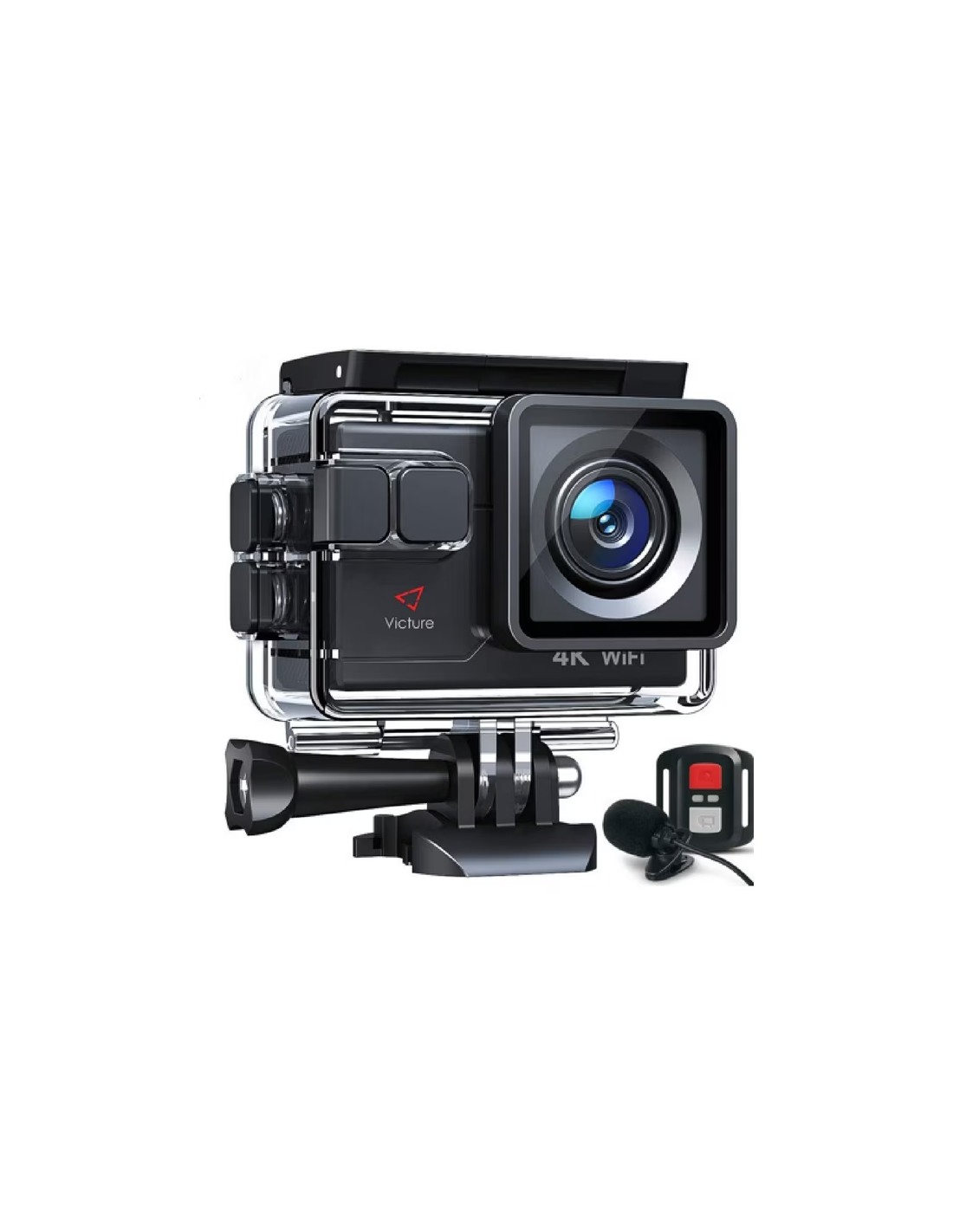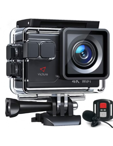Victure AC700 Action Camera 4K Fotocamera subacquea da 20 MP con EIS, microfono esterno, telecomando, rallentatore, Timelapse, videocamera sportiva grandangolare 170°con accessori compatibili con Gopro, 2 batterie.