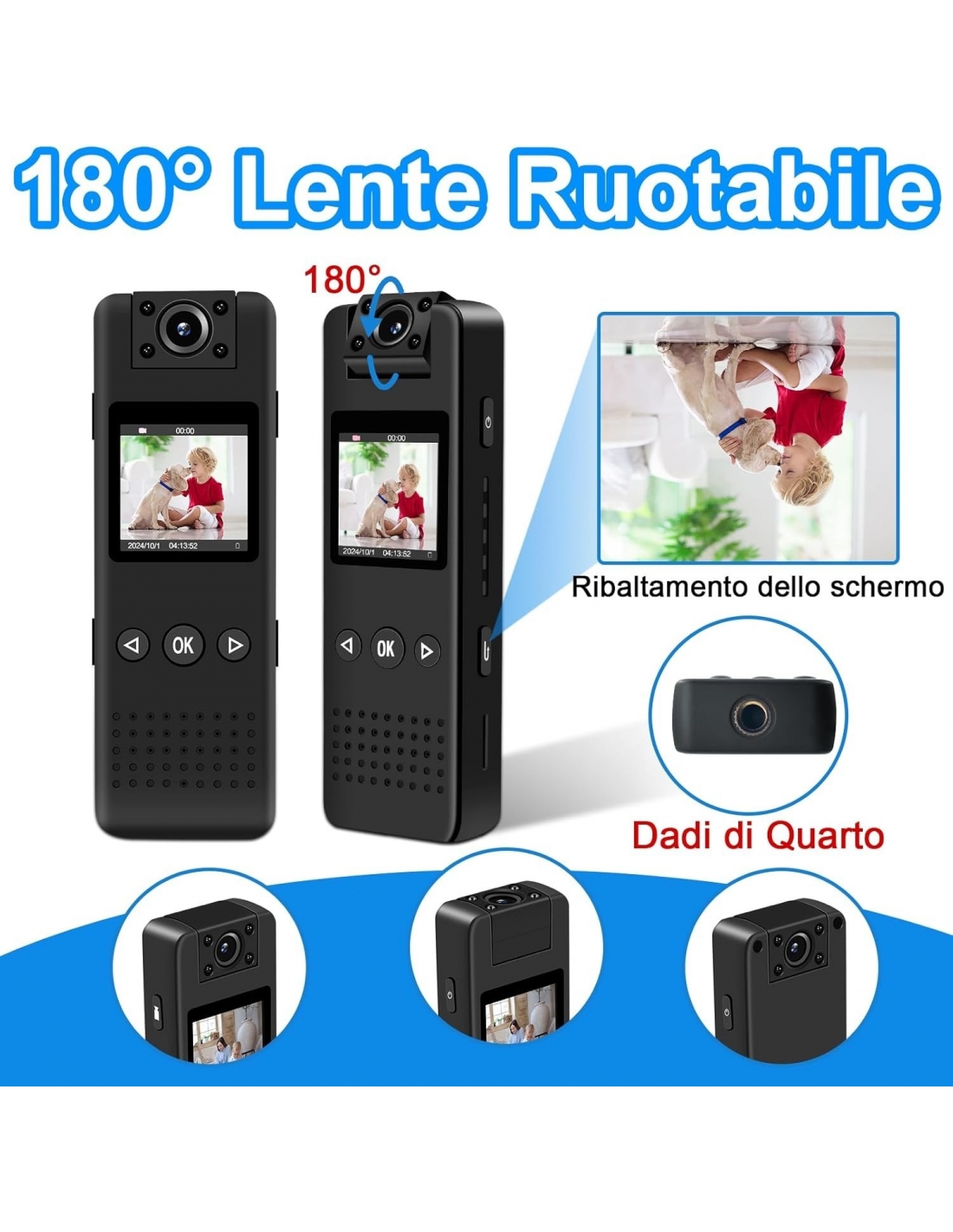Seculare Body Cam 1080P HD & 120° Grandangolo con Obiettivo Rotante a 180°