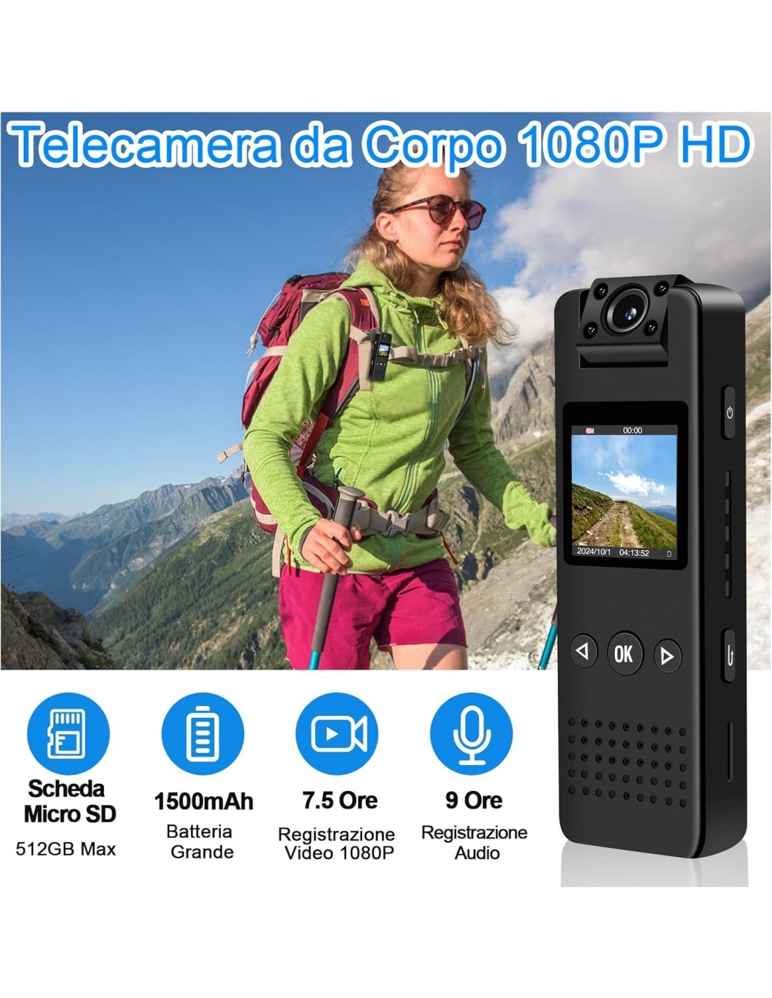 - 【1080P HD & Angolo Largo 120°】Dotato di un obiettivo integrato da 1080P HD e angolo ampio 120°, il bodycam supporta la cattura video ad alta definizione con una copertura più ampia, insieme al supporto audio e immagini